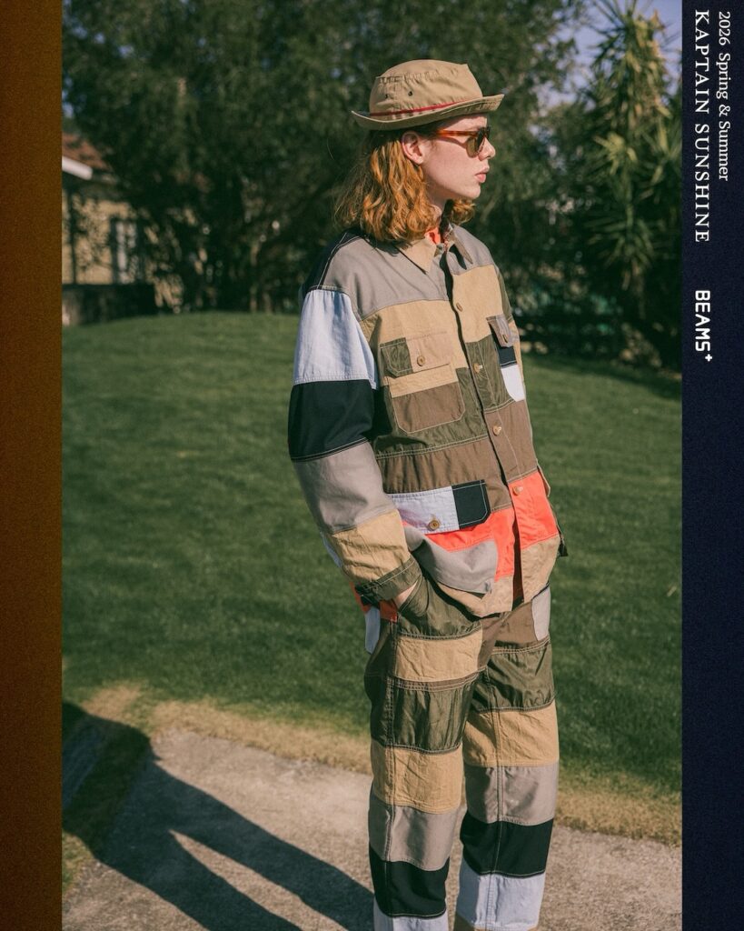 Saint Michael 於 2020 年由 READYMADE 主理人細川雄太(Yuta Hosokawa)與圖像設計師 Cali Thornhill DeWitt 共同創立,將古著街頭服飾融合於奢侈品之中,所有產品都在日本製造。核心概念就是「看起來絕不是全新」的感覺,當中 T 恤的裂紋、衛衣的色落做舊、外套的破壞感,只有日本品牌才能把這種執著做到位。而在這個夏季,Kaptain Sunshine 與 Beams Plus 亦聯名復刻了這款彩色拼布外套。