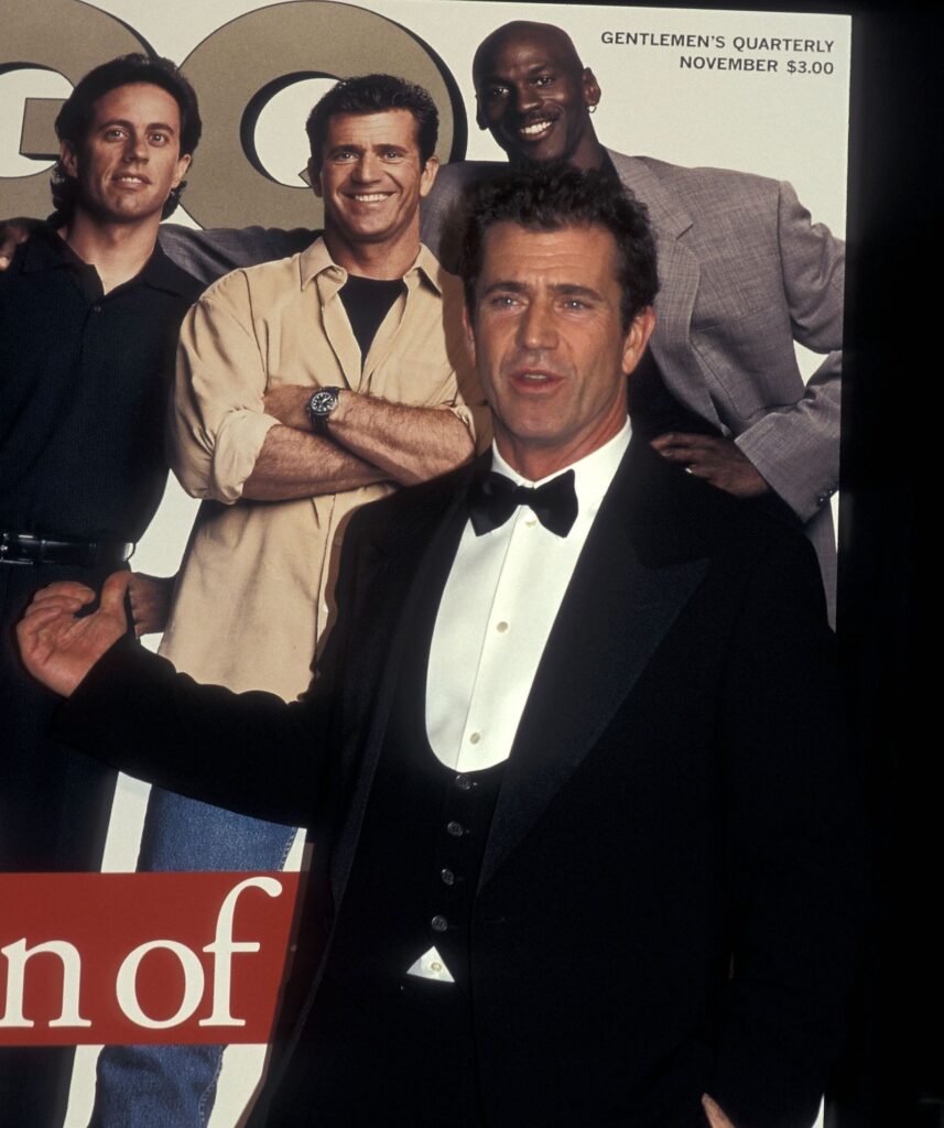 American actor Mel Gibson was the first film actor to be named GQ Men of the Year (MOTY). That year, Braveheart—which he personally directed, produced, and starred in—won five major awards at the 69th Academy Awards in 1996. Also appearing alongside him on the MOTY cover that year were renowned talk show host Jerry Seinfeld and the legendary basketball star Michael Jordan (Getty Images)