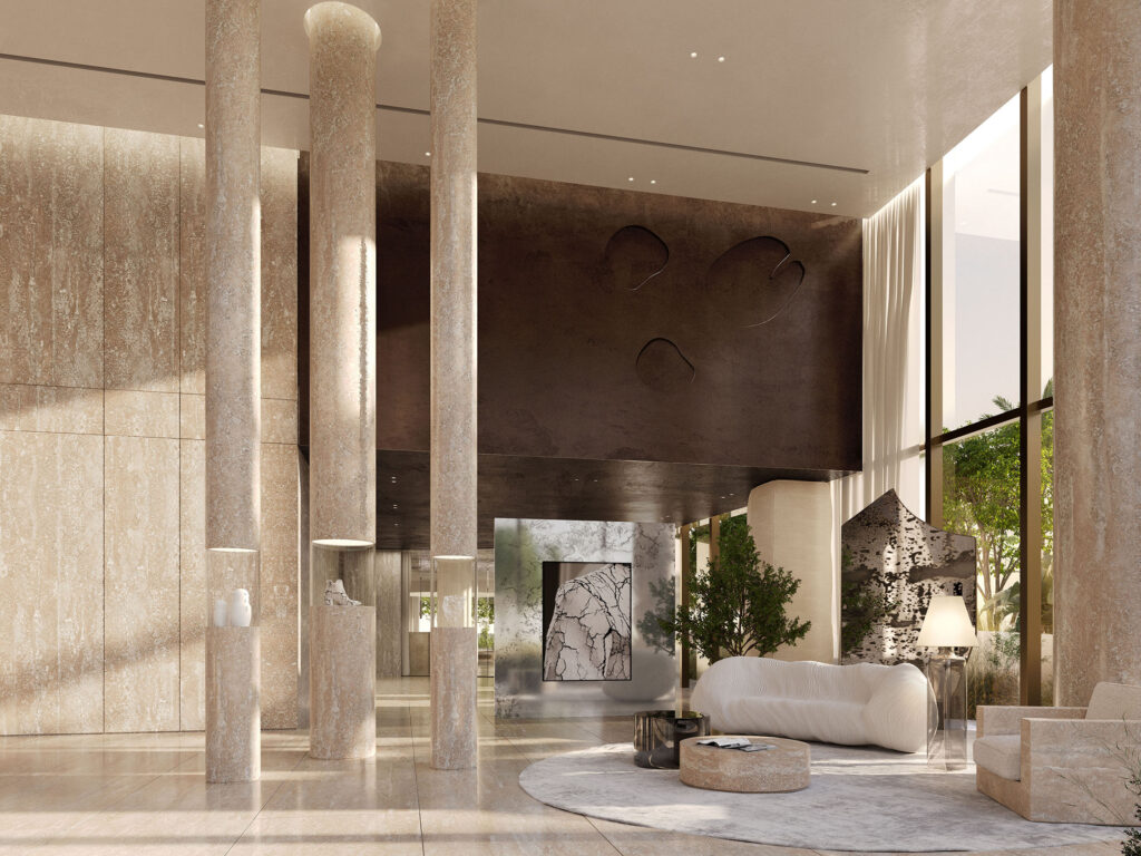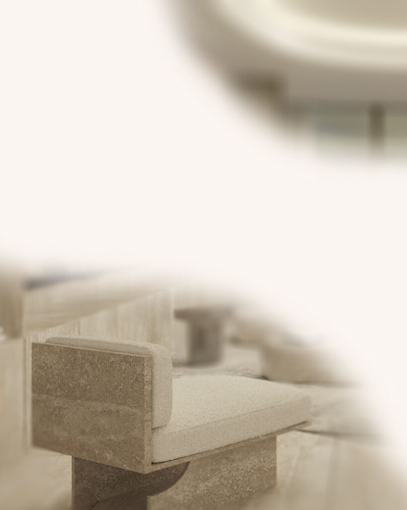 此次住宅項目把這些元素昇華:透過「décortiqué」解構技法、樹脂填充的純白凹紋細節,以及洞石家具的經典造型,營造出解構與重塑的視覺語言。每一處空間不僅是住所,更是一幅幅承載品牌哲學的畫布,讓住戶在奢華中體驗前所未有的自在從容。