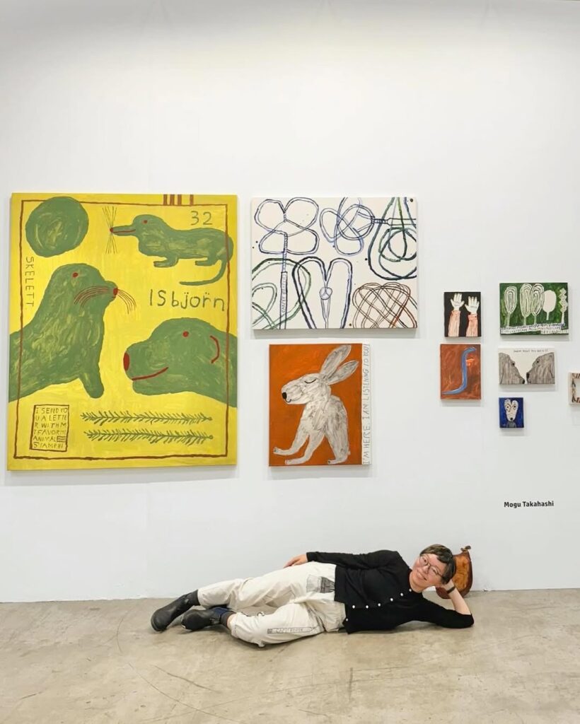 Mogu Takahashi 是來自東京的自學藝術家,以她幽默、俏皮且充滿童趣的 Naive Design(天真設計)作插畫風格而聞名。她的作品充滿不完美,但卻讓人感受到真誠和溫暖,展現了那些日常生活中平凡又可愛的事物。她的作品風格自發、不完美且充滿活力,被稱為「醜萌」,這代表那些線條不整、比例奇怪、色彩大膽卻充滿個性的作品。她常在畫中藏有只有好友才能懂的小秘密,用畫作傳達情感,就像寫信一樣親密。她的作品在日本、巴黎、巴塞羅那、墨爾本和斯德哥爾摩等地展出,也與多個品牌如 Gucci、Shiseido 合作,讓她的風格更廣泛傳播。