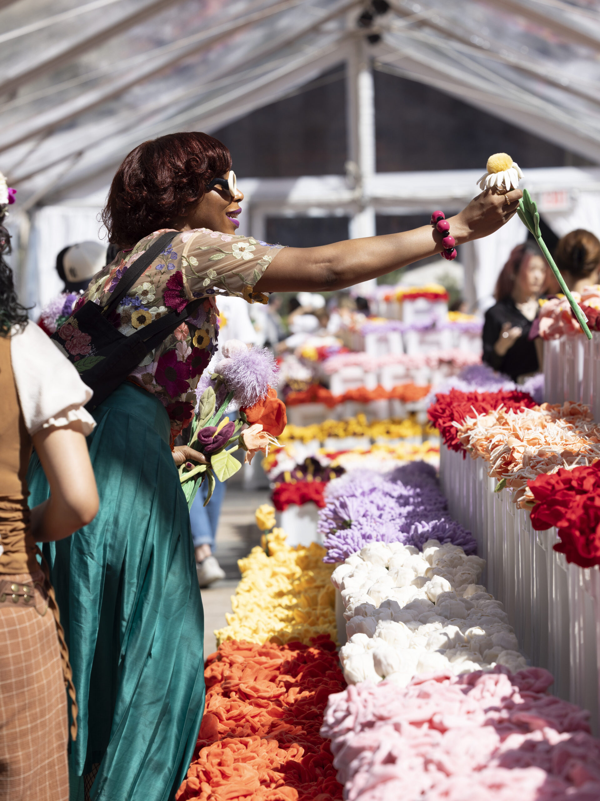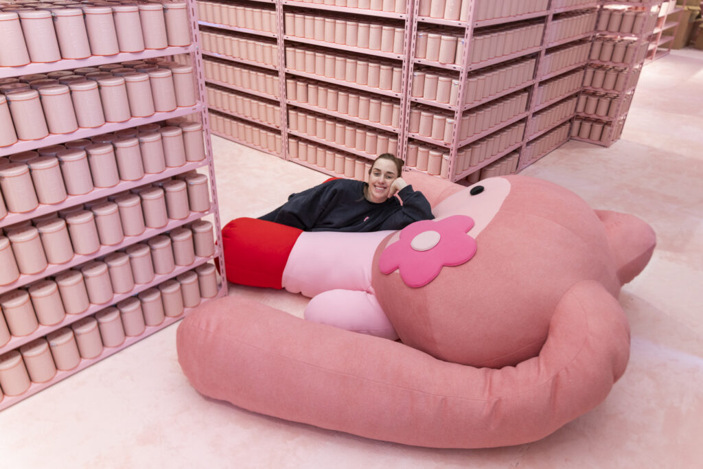 的確,CJ Hendry 在社交平台上收獲了大批粉絲,她的平面畫作亦演變為沉浸式裝置,展覽如 《Monochrome》(2018 年)、《Blonde》(2021 年)和 《Flower Market》(2024 年),將藝術與互動體驗融為一體。「我記得在大約 5 年前,我對繪畫越來越感到沮喪,因為覺得 2D 畫作相當有限。它只是一張紙,而且賣得非常貴,作品也只會收藏於買家的家中。我希望能夠表達和分享更多創意,渴望建立更大的實體概念,一些可以讓人親自走進去、或觸摸得到的東西。」