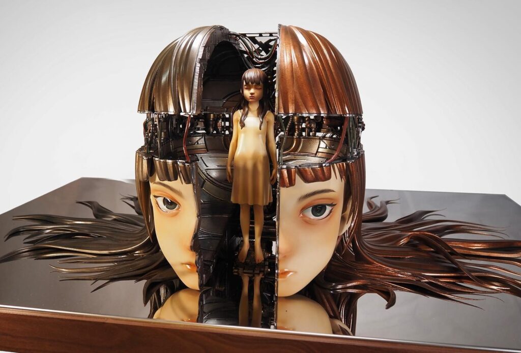 機器生物、分裂的頭顱、唯美的女性身影,這些元素反覆出現在陳嫣冉的作品中,構築出一個既奇特又引人入勝的視覺世界。她的創作在唯美與怪誕之間游移,既是她對世界的藝術詮釋,亦是她透過作品追問存在本質的方式。對她而言,前衛從來不是一種固定的樣式:「前衛應該沒有一個固定的定義,前衛是你不斷再去突破你自己原有的東西。」正因如此,她的創作始終處於流動狀態,不願被歸類,也無意停留於舒適區。從平面繪畫到立體雕塑,再到動畫與影像語言的探索,陳嫣冉不斷推展屬於自己的創作邊界,試圖在每個階段留下新的提問與回應。