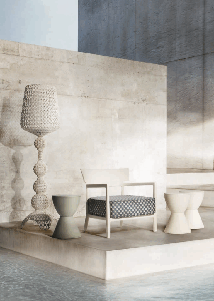 Kartell 是意大利著名的設計家具品牌,1949 年由 Giulio Castelli 創辦。Kartell 是第一個將塑料從廉價日常用品轉變為奢華、時尚家具材質的品牌,將原本被視為「低端」的塑料提升到藝術與設計的高度,讓塑料家具成為現代家居的經典,開創了業界的先河,亦成為了流行風潮。品牌長期與世界頂尖設計師合作,如 Philippe Starck、Anna Castelli Ferrieri、Ferruccio Laviani、Ron Arad 等,75 年來創造出許多經典作品,例如 60年代的人Componibili 儲物櫃、銷量超過 150 萬張的 Louis Ghost Chair 等,不少作品都獲得意大利設計最高榮譽「金圓規獎」(Compasso d’Oro),及被紐約 MoMA、巴黎龐畢度中心等博物館永久收藏。