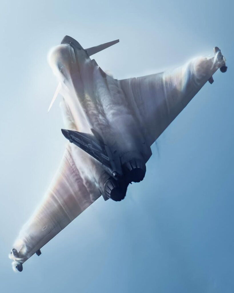 當他穿梭於歐洲各大航展與軍事基地,他的鏡頭避開了戰鬥機單純的暴力美學炫耀,轉而凝視機翼劃過空氣的優雅曲線、後燃器噴射出的璀璨火舌,以及編隊飛行時幾何般精確的空間關係。這是一種用靜止的框架去馴服狂暴的速度的攝影美學,這一瞬的捕捉,要求攝影師同化為飛行的一部分,他的直覺實則是經年累月對航空知識的沉浸,使他能像預知樂章下一節拍般,預知戰機的動向。