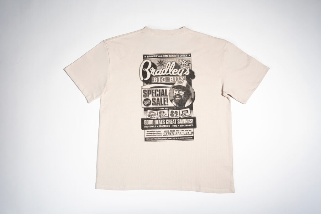當中,限量版T-shirt以劇集標誌性場景與角色為靈感,亮點單品包括 Bradley’s Big Buy T-shirt,靈感源自劇中主角們補給的超市,All Creatures Welcome T-shirt 則配以鮮明標語,並配以復古洗水效果;Hawkins Heroes T 恤及連帽衛衣印上一眾主角的肖像,懷舊型格。