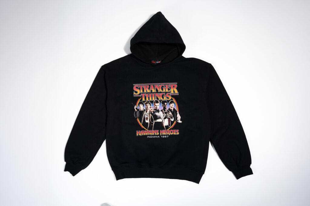 一系列80年代復古服飾(限量版T-shirt、衛衣、tote bag、帽及襪子等)、生活精品(匙扣及文具等),以及與 Bark n Bites 聯乘推出的亞洲首個《Stranger Things》主題寵物服飾及玩具系列。