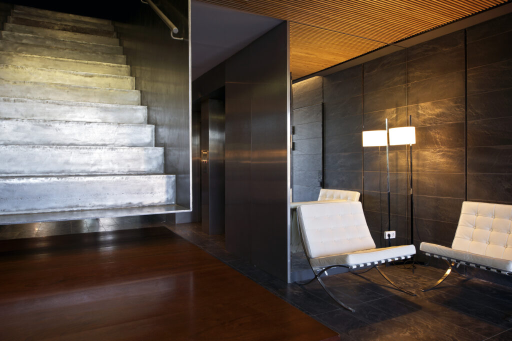 而在結構設計上, Ludwig Mies van der Rohe 巧妙地將Barcelona Chair 椅背與椅座的不銹鋼鋼條向下延伸至椅腳,形成兩對弧形交錯的 X 型鋼架。這個X 型結構,既是椅子外觀的核心造型元素,也是整體的力學支撐點。它像是這張椅子的心臟,將不同的元素緊密連結,既穩固又優雅。這個設計不僅展現出一種獨特的美學語言,更是對於結構力學的深刻理解。它讓整張椅子在保持輕盈外觀的同時,卻擁有令人驚豔的堅固與穩定。這個X型鋼架,成為了Barcelona Chair 最重要的設計精髓,不僅代表了設計師對於形式與功能完美融合的追求,也彰顯了他對於結構美學的深刻洞察。