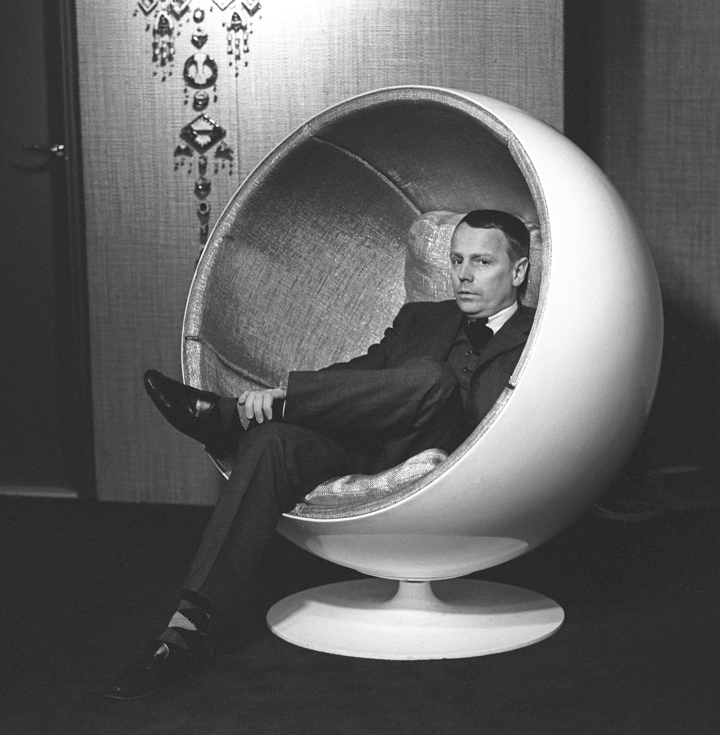Eero Aarnio 在 1932 年出生於芬蘭首都赫爾辛基(Helsinki),是現代家具界最具創新精神的設計師之一。1954年至1957年,他在 Helsinki 應用美術學院深造,之後開始在Helsinki 基創立自己的設計工作室,將傳統家具的束縛一一打破。他熱衷於使用塑膠、鮮豔的色彩和有機的形狀,展現出與眾不同的設計風格。1960 年代初,他夢想創造出一款令人無法忽視的家具,正巧當時太空熱潮席捲全球,航天科技與未來主義的想像激勵著他。他受到啟發,決定用玻璃纖維等新材料,設計一款宛如太空艙般的球形座椅。這款球椅的核心靈感,來自他對太空探索的迷戀,以及希望打破傳統家具的固有形象。