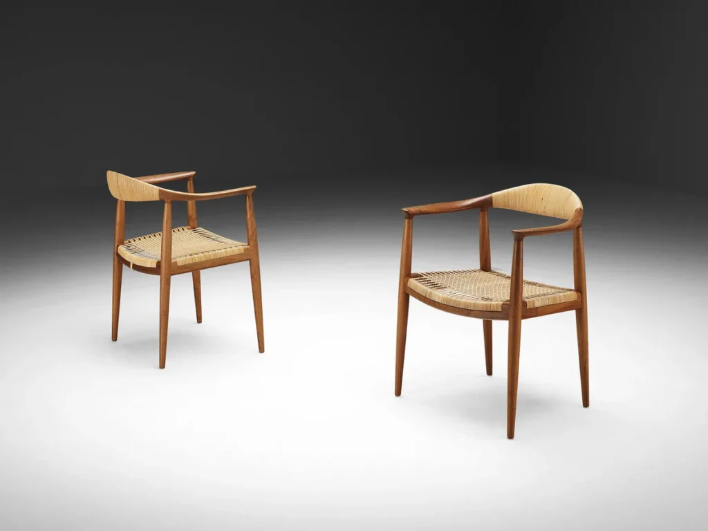 這個設計之所以傳世,除了它的精緻工藝與優雅線條,更在於它曾經出現在歷史重要時刻。1960 年,美國第一場總統電視辯論中,候選人甘迺迪與尼克遜就坐於這張 The Chair (總統椅 ),這個畫面不僅成為設計史上的經典,也象徵著這張椅子代表的簡潔與尊嚴。它的外觀簡單大方,沒有繁瑣的裝飾,卻散發出一股強烈的建築美學魅力,完美融合工藝與設計的精神,成為國際場合的常見選擇。Wegner 曾說:「一路走來,我都只保持一個念頭,那就是我要做把好椅子。」這句話簡單卻深刻,彰顯他對品質的堅持。