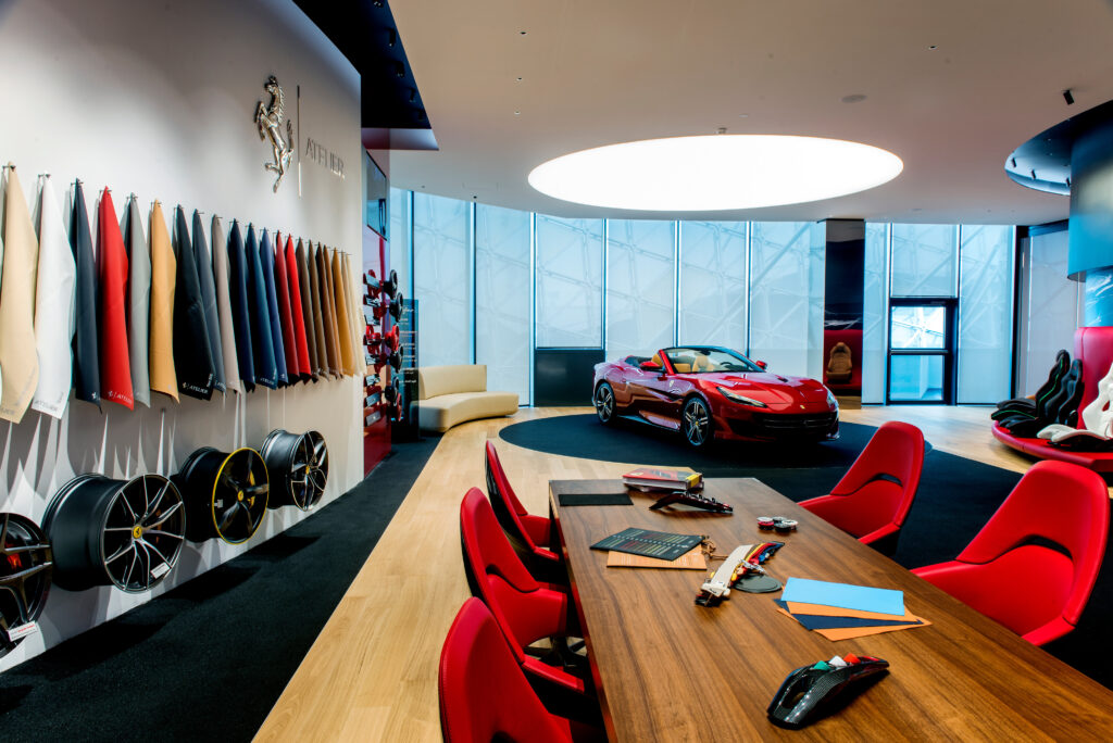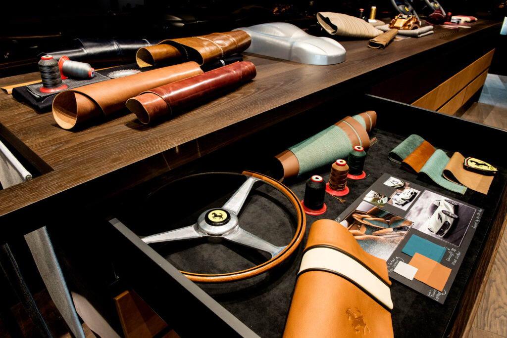 走進法拉利位於馬拉內羅的 Tailor Made 部門,你不會聽見機器的喧囂,只有寂靜中皮料與剪刀輕觸的悉簌聲。對 Ferrari 而言,定制並非附加服務,而是一種傳承的表現。這項於 2011 年正式推出的個性化定制服務,旨在讓客戶重溫品牌自 1950 年代以來的輝煌定制傳統。如今,這種精神被搬進 Tailor Made Lounge:一個由設計顧問、材料專家與品牌傳承學家組成的定制聖殿。客戶更能全程追蹤製造流程,甚至親赴馬拉內羅見證愛車誕生,讓整個過程成為一場充滿儀式感的朝聖之旅。