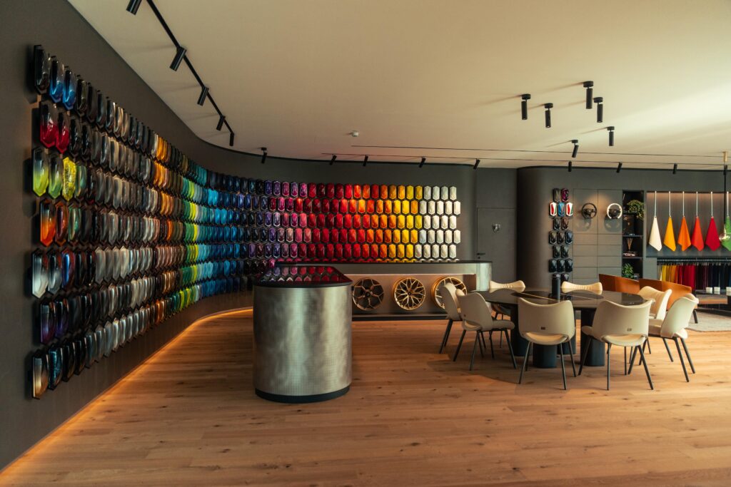 在 Lamborghini 車廠所在地 Sant’Agata Bolognese 城鎮的空氣中,永遠瀰漫着一股不羈的鬥牛氣息。在這裏,Lamborghini 的 Ad Personam 客製化工作室像是一座色彩與材質的遊樂場。這項於 2006 年萌芽、並於 2013 年成立專屬團隊的定制服務,其專門的定制工作室就位於 Lamborghini 總部。客戶在此與設計師團隊密切溝通,甚至透過 3D 模擬技術即時預覽每一個選擇的實際效果。即使無法親赴意大利,品牌也提供遠程虛擬工作室,讓客戶通過 VR 視覺模擬去完成整個定制流程。