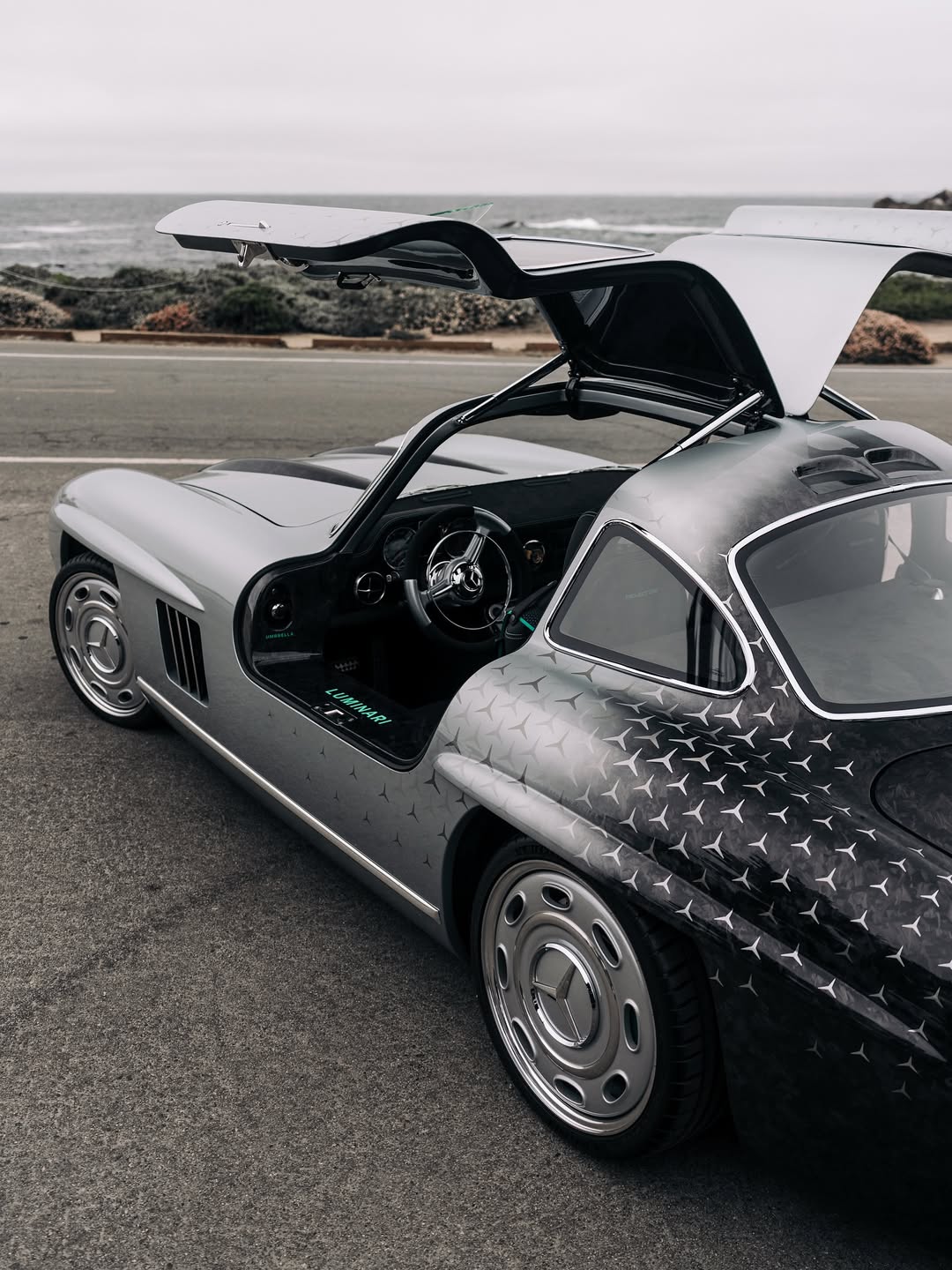 來自紐約的古典汽車定制改裝公司 Luminari Motor Co,近期推出其 restomod 新作品 Project One,以 1950 年代 Mercedes‑Benz 300SL Gullwing 為基礎進行改造,保留標誌性鷗翼車門與修長比例,卻改用全碳纖維車身,部分更以裸露鍛造碳纖維呈現,視覺效果極之誇張而且充滿未來感。