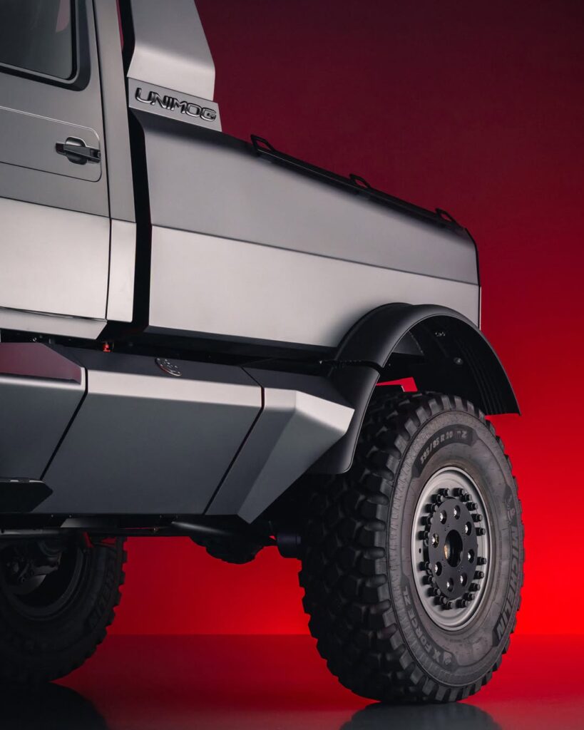 車輛仍以 Unimog U 4023 為基礎,保留了其越野車經典的門式車橋設計。這種結構能大幅提升底盤離地間隙,使車輛能輕鬆跨越一般越野車難以企及的高度障礙。Mercedes-Benz 的工程師亦保留了可大幅扭轉的柔性車架,以及前後軸的縱向差速鎖功能。這些配置確保了在極端崎嶇地形中,每個車輪都能獲得足夠的牽引力,使其越野實力甚至超越了多數以豪華著稱的 SUV。