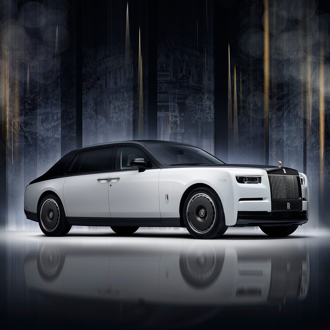 作為勞斯萊斯史上最複雜的驚世傑作,黑白雙色車漆與流線型輪廓彷彿帶人回到 1930 年代荷里活永恆優雅的黃金時代。當時,Phantom 車款經常亮相於電影首映禮,載送影壇巨星,成為時代魅力的象徵。特別研發的塗裝在透明塗層中融入虹彩玻璃碎片,賦予車身閃爍的金屬光澤,創造令人著迷的視覺效果。