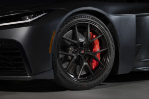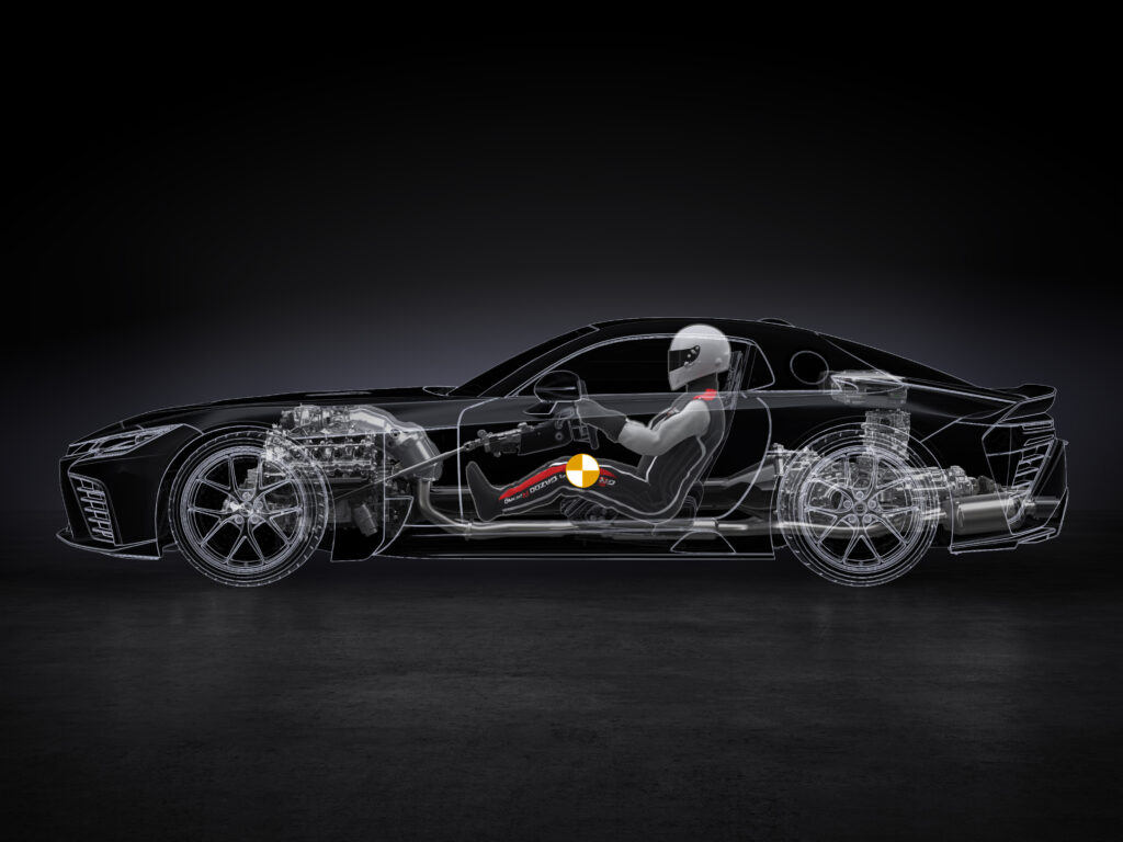 開發團隊為了實現輕量化與高剛性的目標,這次 TOYOTA 首度在 GR GT 上採用全鋁合金車體骨架,透過在主要結構配置大型鋁合金鑄件、最佳化鋁擠型材位置,並採用先進接合技術,達成極高剛性;外覆板則使用鋁合金與 CFRP 碳纖維製成。此外,懸吊系統前後皆採用全新設計的鋁合金雙 A 臂,輪胎選用 Michelin 專為 GR GT 開發的 Pilot Sport Cup 2;煞車系統則搭載 Brembo 碳纖維煞車碟盤,煞車時的車輛動態控制也是與職業車手共同調校開發。