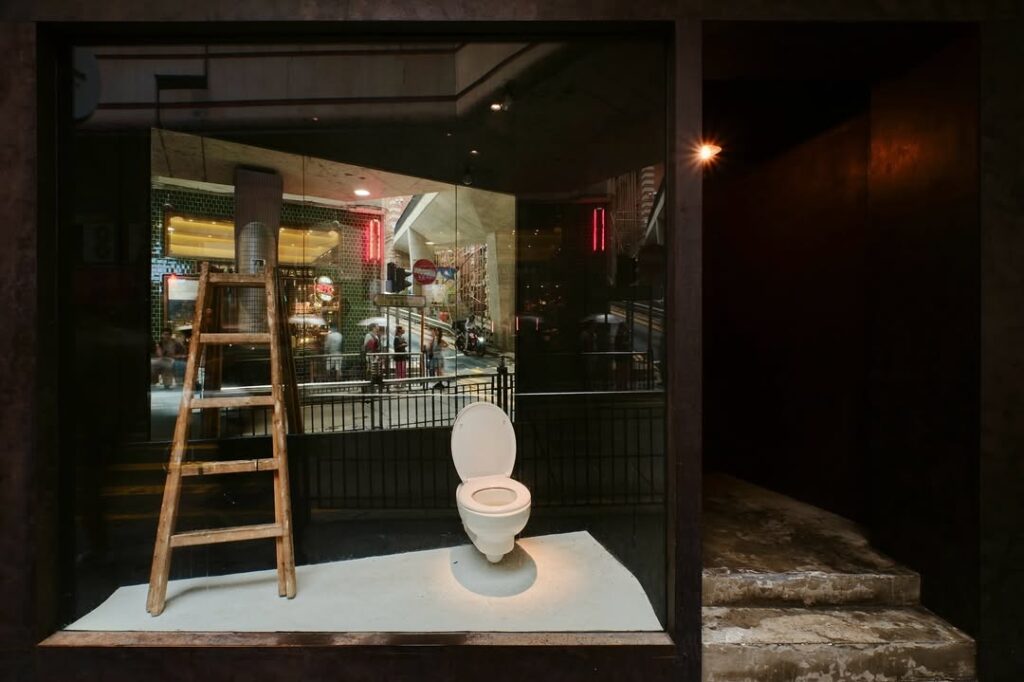 Lockdown 的外觀刻意設計成「廢棄五金舖」,門口放着梯子與馬桶,看似無厘頭,卻是 speakeasy 的幽默暗號。單向鏡讓室內看得出外面,但外面無法窺視內部,增添神秘感。