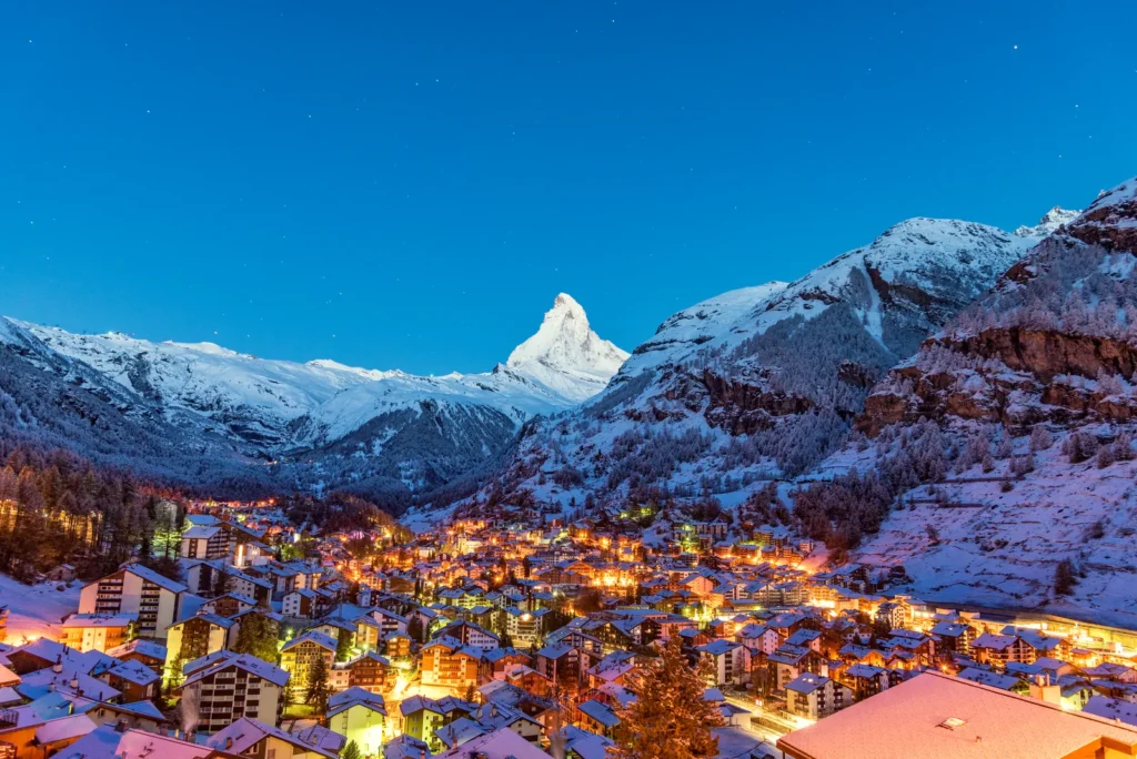 Zermatt 位處海拔約 1,600 米,冬季降雪穩定。雖然是著名滑雪聖地,但小鎮本身因禁止汽車通行,氣氛比其他熱門度假區更寧靜。街道上有不少節日裝飾,木屋和小店在冬天特別有氣氛。除了滑雪,旅客亦可以選擇冬季遠足或參加雪橇行程。當地餐廳提供正宗瑞士火鍋、Raclette 芝士與瓦萊州葡萄酒,是值得專程品嚐的節慶滋味。