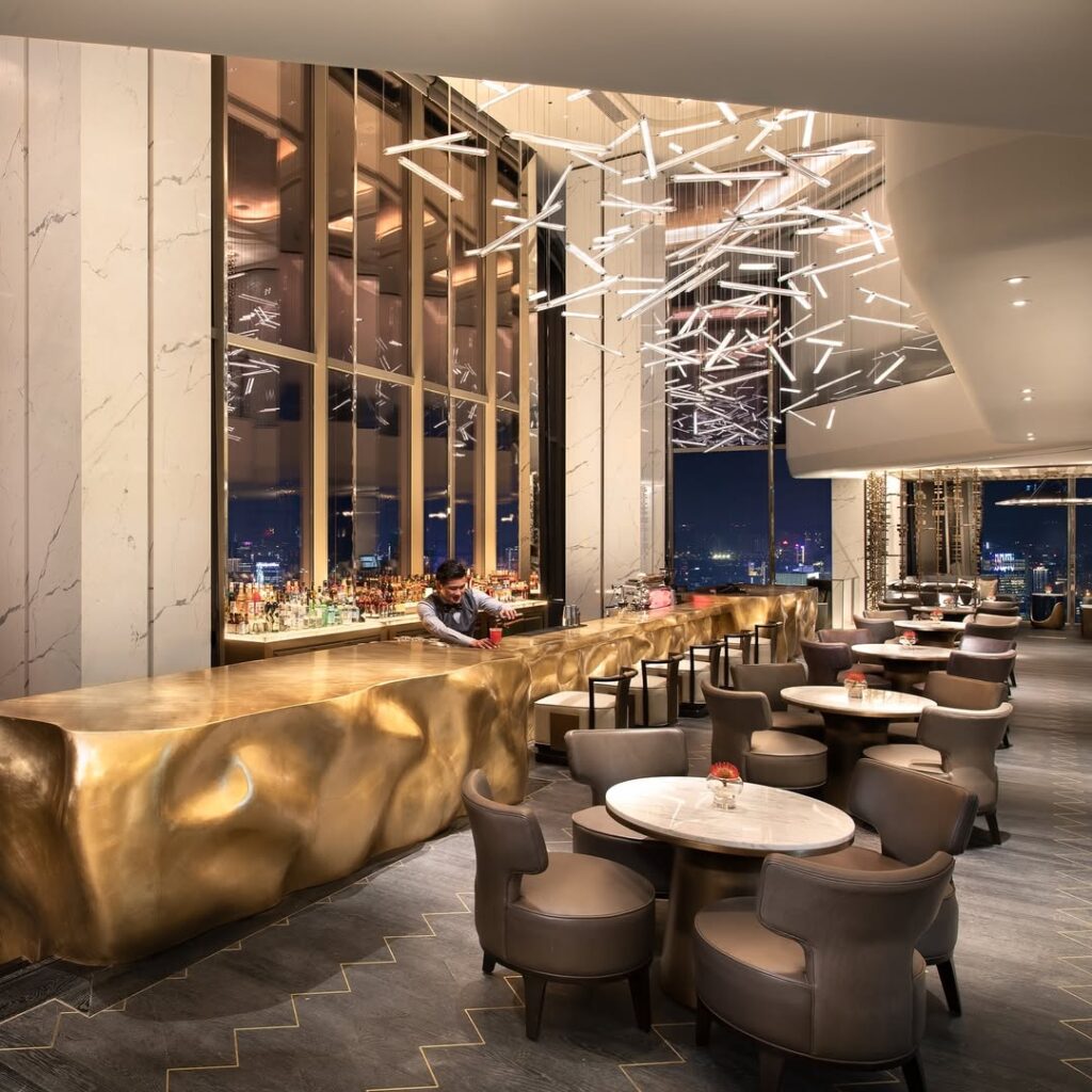 長廊酒吧(Long Bar)位於深圳鵬瑞萊佛士酒店,傳承新加坡萊佛士酒店 (Raffles Singapore) Long Bar 的百年悠久歷史,更將這份經典提升至新的高度,坐擁酒店 71 樓最佳觀景位置,亦是全球最高長廊酒吧。270 度落地窗俯瞰深圳灣、後海灣的天際線與遠處香港西北景致,視野被譽為深圳頂級景觀之一。建議日落時份到訪,可盡情欣賞夕陽餘暉及夜景切換。招牌飲品為「深圳司令」(Shenzhen Sling),靈感源自新加坡萊佛士酒店誕生的新加坡司令(Singapore Sling),以清甜的荔枝配上微咸的海鹽,層次清新、豐富。