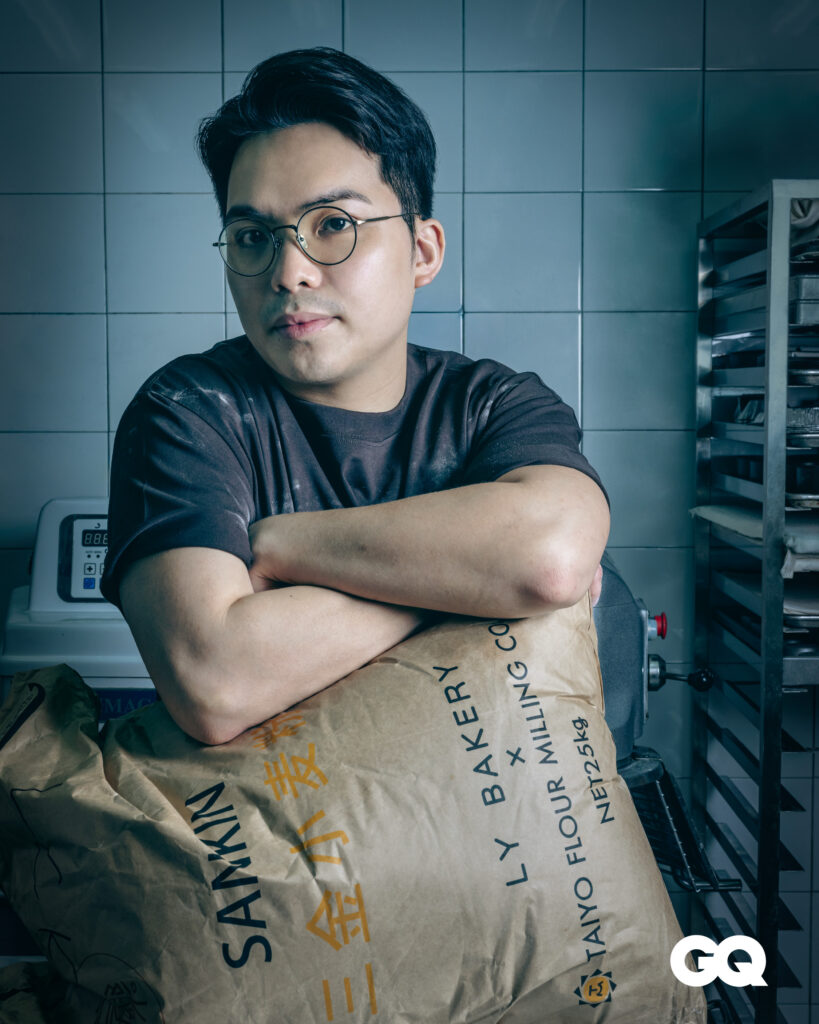 拍攝當日,Grégoire Michaud 笑言:「《GQ》總報導 Brad Pitt 這樣的男士,而我便是『Bread Pitt』!」這位 Bakehouse 創辦人除了幽默風趣,更以創意聞名。2018 年開業不久,他用剩餘的可頌麵糰意外開發出 Sourdough Eggtart(酸種葡撻)並大受歡迎,如今已成為吸引全球老饕的招牌作,同時讓品牌在香港擴展至 8 間分店。這款酸種葡撻不僅是成功關鍵,更體現他作為烘焙師的使命:「美國律師 Louis Nizer 說過:『用雙手的是工人;加上頭腦的是工匠;但結合雙手、頭腦與心靈的,才是藝術家。』」因此,Bakehouse 的糕點融入了新桂香燒臘的叉燒、永和蜜蜂場的蜜糖等在地食材。Grégoire 強調:「無論走到哪裏,當地人與他們的技藝總啟發我。我愛思考如何使用他們的食材,透過我的作品將之昇華。」