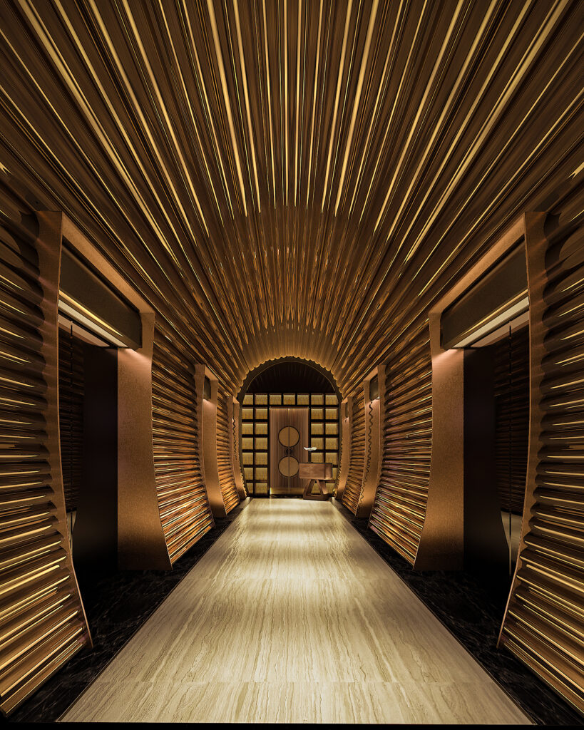 沿華麗的旋轉樓梯而下,設有現代中菜餐廳,由主廚 Benson Feng 主理,以創新角度演繹川菜與粵菜的精髓,將麻辣與本味的經典火花重新編碼。主餐廳晚上會搖身一變成為晚宴俱樂部,配合現場表演者及音樂演出,與日間飽覽曼谷城市天際線的氣氛截然不同。餐廳亦設有私隱度高的專屬包廂,專為會員及特別場合而設,提供貼心個人化服務及度身設計的特別菜單。