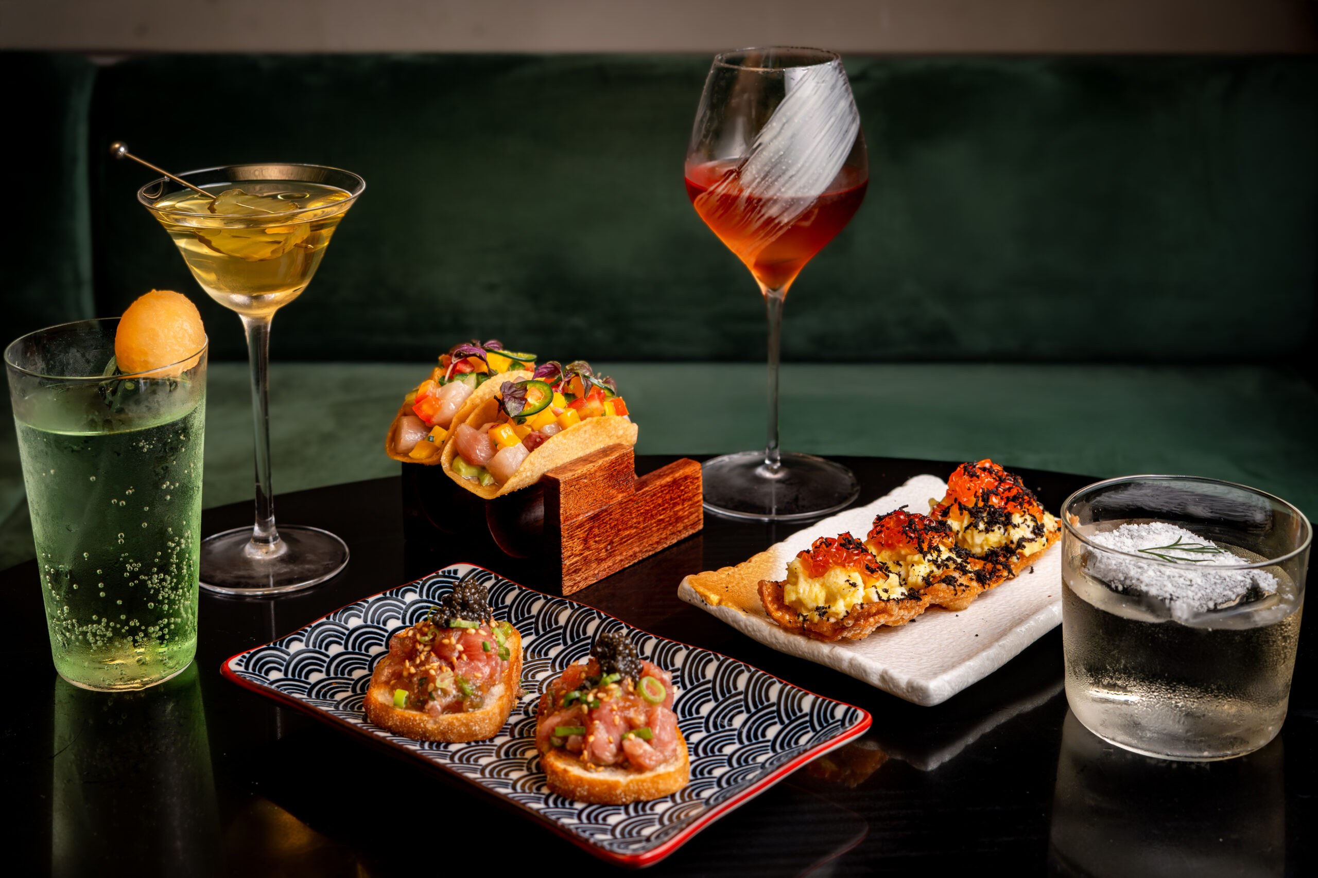 首張雞尾酒單名為「Dream Is Destiny」,靈感來自日本食材與風味,包括以Nikka Days威士忌混合經芝麻油洗處理的Oloroso雪莉酒的「Ukiyo」,味道充滿深度,口感絲滑;「F.YU」以氈酒、燒酎、紫蘇與哈密瓜調製,清新怡人;「Kiss of a Geisha」則走神秘路線,以香菇油洗處理的波本威士忌,結合咖啡甜酒與苦精,呈現出非常獨特的對比。