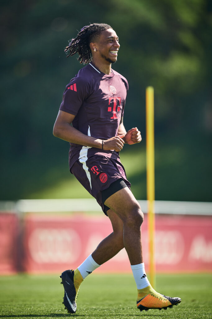 MUNICH, GERMANY – AUGUST 14: Michael Olise of FC Bayern Muenchen during a training session at on August 14, 2024 in Munich, Germany. (Photo by F. Noever/FC Bayern via Getty Images)