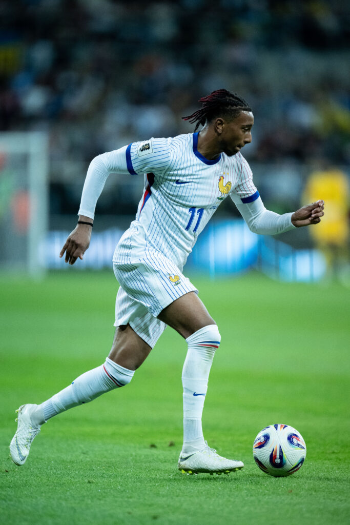 MUNICH, GERMANY - SEPTEMBER 13: Michael Olise of FC Bayern Muenchen runs with the ball during the Bundesliga match between FC Bayern München and Hamburger SV at Allianz Arena on September 13, 2025 in Munich, Germany. (Photo by Kevin Voigt/GettyImages)