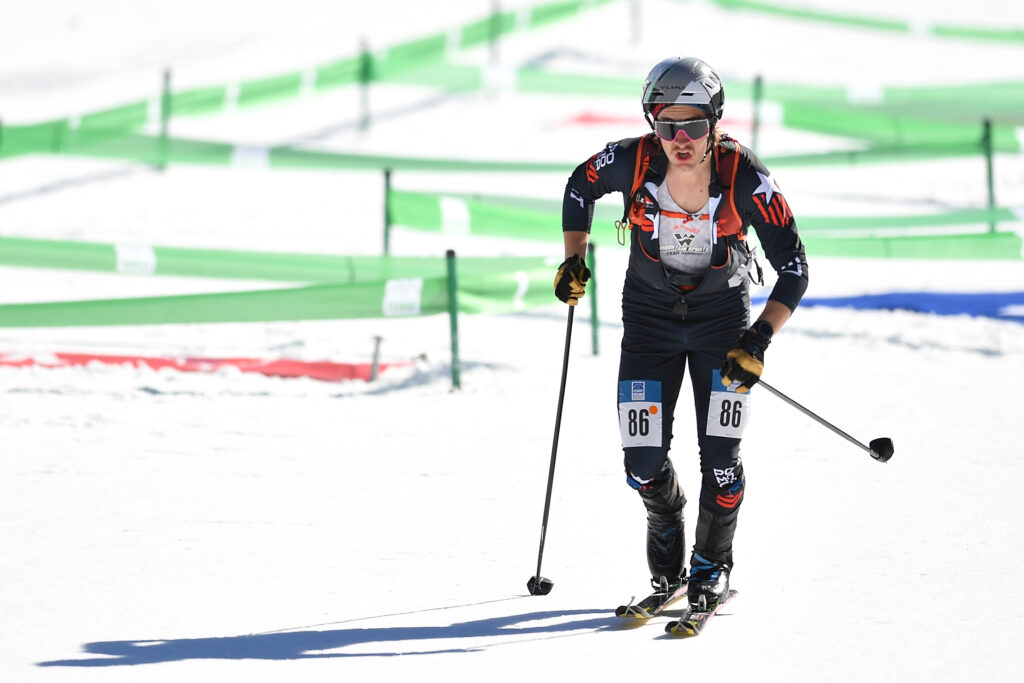 MONTHEY, SWITZERLAND – MARCH 06: Zane Wasicko of USA in action during the Sprint Race during the 2025 ISMF Ski Mountaineering World Championships Sprint Race on March 6, 2025 in Monthey, Switzerland. (Photo by Valerio Pennicino/Getty Images)