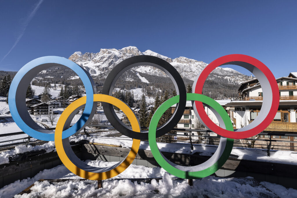 CORTINA D’AMPEZZO, ITALY – JANUARY 27: The Olympic Rings are set in front of surrounding mountains on January 27, 2026 in Cortina d’Ampezzo, Italy. Cortina will host Sliding, Curling and Women’s Alpine events. (Photo by Maja Hitij/Getty Images)