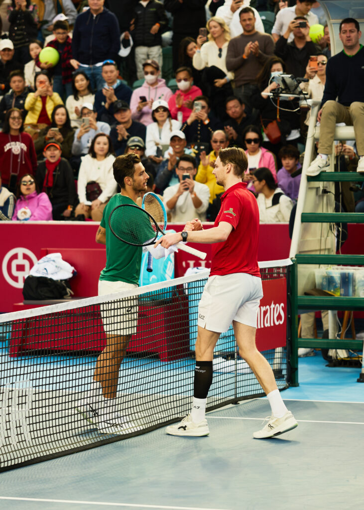 當被問及首次在香港作賽如何調整心態時,Alexander Bublik 笑言:「我比賽前兩天才抵達香港。奇怪的是,沒有太多時間反而幫了我——沒有跟大家一起訓練,就不會胡思亂想。我只跟陪練員打了一盤練習賽,然後就回家準備第一場比賽。加上每天比賽讓我的狀態越來越好,今晚能戰勝這麼頂尖的 Lorenzo Musetti,真的非常開心。」