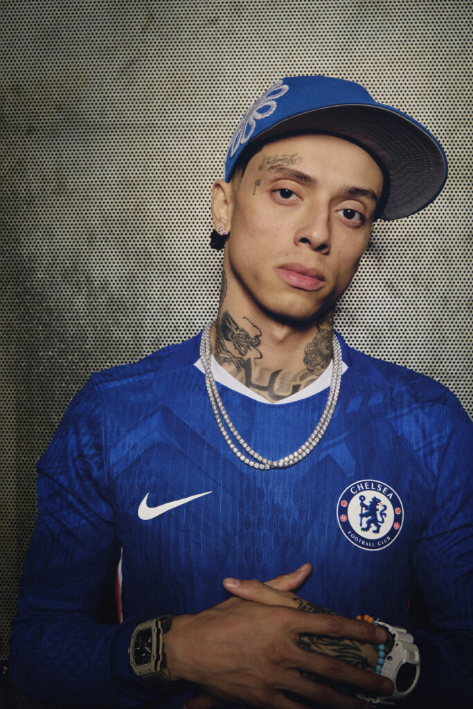英國饒舌歌手 Central Cee 是車路士的狂熱支持者,他不僅常現身車路士主場——史丹福橋球場,最近還特別訂製了車路士會徽的鑲鑽項鍊,公開展示忠誠度,更與球星 Cole Palmer 互動頻繁,完美體現音樂與足球文化的跨界。