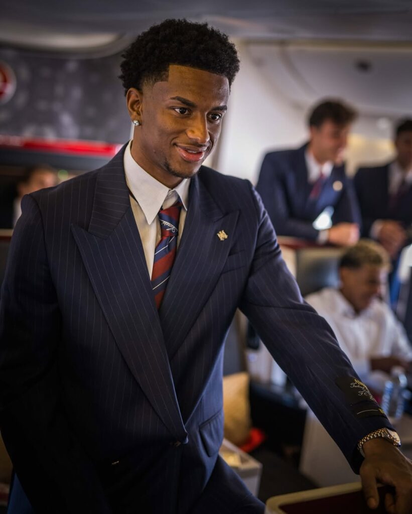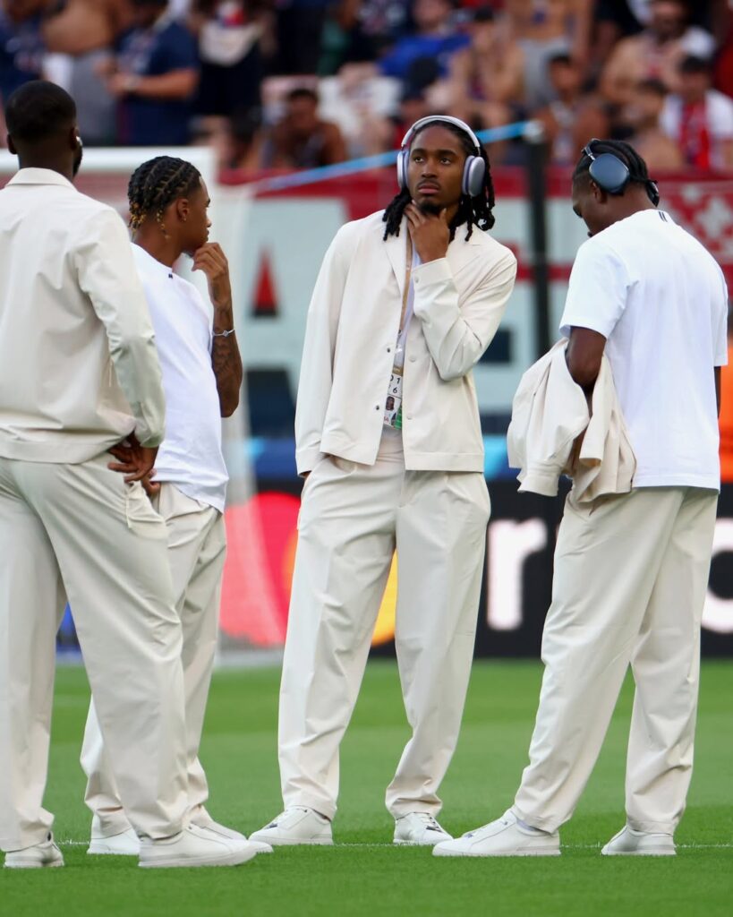 作為法國足球與時裝的兩大頂級品牌,巴黎聖日耳門聯乘 Dior 絕對是最合情合理。系列由黑、海軍藍和灰色注入筆挺俐落的西裝、白襯衫及「CD」標記針織毛衣上,球員們的親身演繹彷彿猶如巴黎時裝週的模特兒一樣,將運動服提升至高級時裝的境界。自 2024 年 12 月馬賽決定聯乘 Paul Smith 設計西裝後,此經典的深藍色西裝與藍色領帶已成為球隊作客的造型指標,剛剛 9 月歐聯首場作客皇家馬德里比賽日,便於班拿貝球場中盛大亮相。