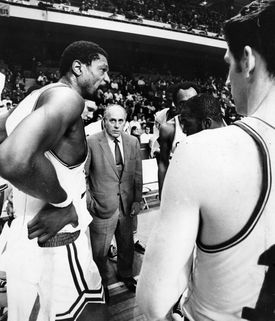 這份不甘延續到了 1966 年與 1969 年。在 1966 年的對決中,即使 Baylor 的膝蓋傷勢已被醫生宣判職業生涯的死刑,他依然咬牙帶傷上陣,雙方再次血戰至決勝局,無奈湖人依舊飲恨,成就了綠衫軍史無前例的八連冠偉業。而到了 1969 年,當時湖人在第一戰憑藉加時賽上演驚天逆轉,氣勢如虹。然而,塞爾特人的傳奇教頭 Red Auerbach 卻在此時展現了極致的心理戰。他在第二戰前無預警宣佈自己將於季後退休,並直接任命當家球星 Bill Russell 成為下一任主教練,這讓 Russell 成為了 NBA 史上首位非裔美籍主教練。