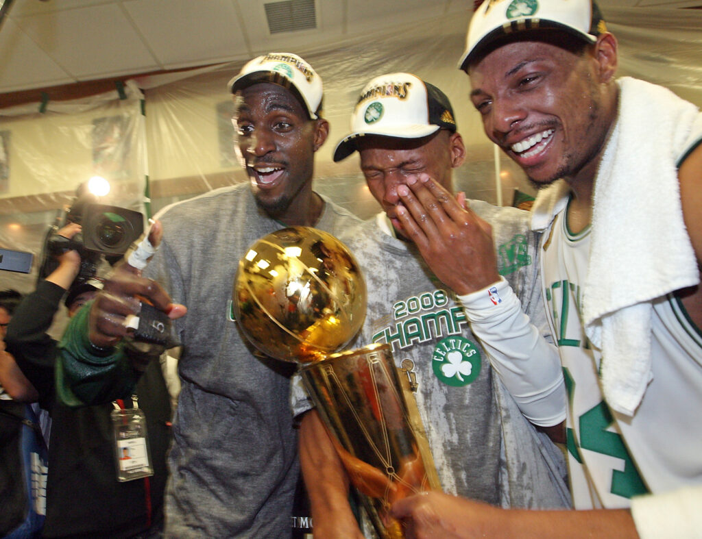 直到 2007 年,波士頓迎來了震驚聯盟的歷史性交易。Kevin Garnett、Paul Pierce 與 Ray Allen 在花園球館組成駭人聽聞的「三巨頭」,加上 Rajon Rondo 的崛起,綠色榮耀再次復活。在 2008 年的總決賽中,他們迎戰獲得 Pau Gasol 助陣的湖人。塞爾特人不僅在第四戰上演史詩級逆轉,更在第六戰血洗湖人,昂首掛起隊史第 17 面總冠軍旗幟。