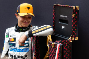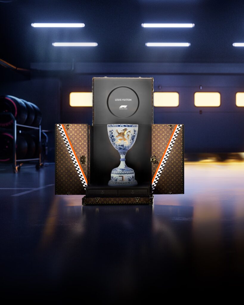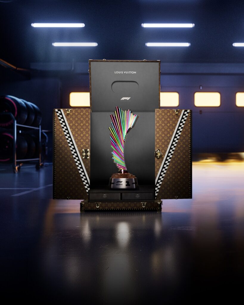 自 2025 年起,Louis Vuitton 與 F1 一級方程式賽車簽訂了長達十年的合作協議,為各站比賽總共訂製了 24 款專屬獎盃旅行箱。每款旅行箱完美融合傳統與創新,在經典的 LV Monogram 帆布上,融入不同色彩、象徵「Victory」的「V」字樣,以及呼應賽道終點線的黑白方格圖案,同時融入賽事舉辦城市的象徵性色彩與獨特個性,以此致敬賽道內外對卓越的追求,以及頂尖賽車運動所帶來的刺激、尊榮與至高無上的終極勝利。