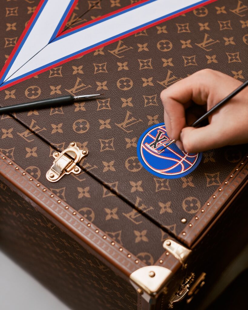 自 2020 年起,Louis Vuitton 與 NBA 開啟全球合作,成為首個官方獎盃旅行箱供應商,為總決賽冠軍頒發的 Larry O’Brien Trophy 訂製專屬旅行箱。箱身覆以經典 LV Monogram 帆布,飾以白色「V」字圖案並搭配藍紅細節,內裡則採用 NBA 官方深藍色襯裡,完美呼應美國職業籃球聯賽的主題與活力。
