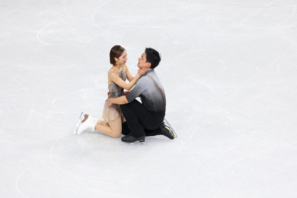 MILAN, ITALY – FEBRUARY 16: Riku Miura and partner Ryuichi Kihara of Team Japan react after competing during Pair Skating – Free Skating on day ten of the Milano Cortina 2026 Winter Olympic games at Milano Ice Skating Arena on February 16, 2026 in Milan, Italy. (Photo by Catherine Steenkeste/Getty Images)