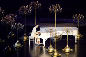 VERONA, ITALY – FEBRUARY 22: Gloria Campaner plays the piano during the Milano Cortina 2026 Winter Olympics Closing Ceremony on day sixteen of the Milano Cortina 2026 Winter Olympic games at Verona Olympic Arena on February 22, 2026 in Verona, Italy. (Photo by Andreas Rentz/Getty Images)