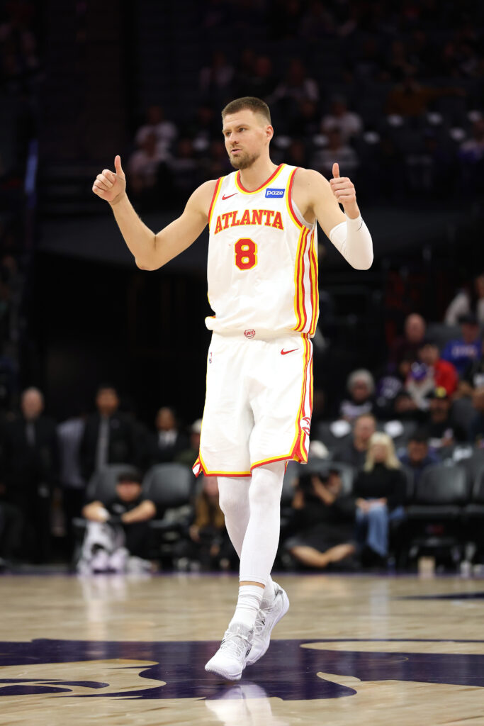 SAN FRANCISCO, CALIFORNIA – APRIL 06: Jonathan Kuminga #00 of the Golden State Warriors celebrates a three-point basket against the Houston Rockets in the first quarter at Chase Center on April 06, 2025 in San Francisco, California. NOTE TO USER: User expressly acknowledges and agrees that, by downloading and or using this photograph, User is consenting to the terms and conditions of the Getty Images License Agreement. (Photo by Eakin Howard/Getty Images)SACRAMENTO, CALIFORNIA – NOVEMBER 12: Kristaps Porzingis #8 of the Atlanta Hawks reacts after the Hawks made a basket against the Sacramento Kings during the second half at Golden 1 Center on November 12, 2025 in Sacramento, California. NOTE TO USER: User expressly acknowledges and agrees that, by downloading and/or using this photograph, user is consenting to the terms and conditions of the Getty Images License Agreement. (Photo by Ezra Shaw/Getty Images)
