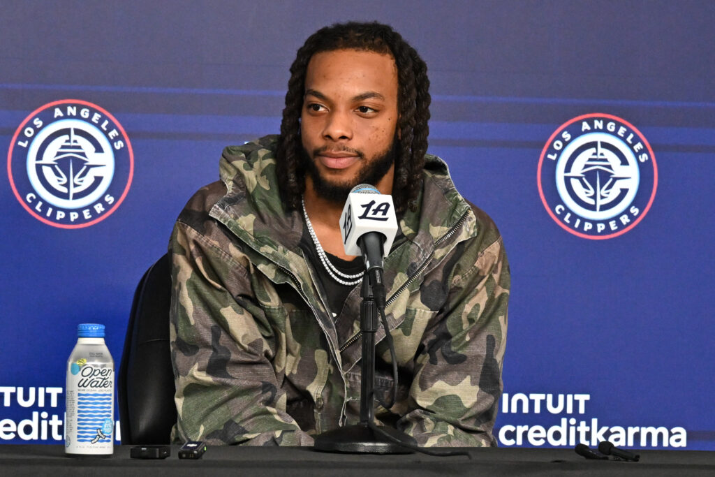 INGLEWOOD, CALIFORNIA – FEBRUARY 04: Darius Garland speaks at a press conference during a basketball game between the Los Angeles Clippers and Cleveland Cavaliers at Intuit Dome on February 04, 2026 in Inglewood, California. NOTE TO USER: User expressly acknowledges and agrees that, by downloading and/or using this Photograph, user is consenting to the terms and conditions of the Getty Images License Agreement. (Photo by Allen Berezovsky/Getty Images)