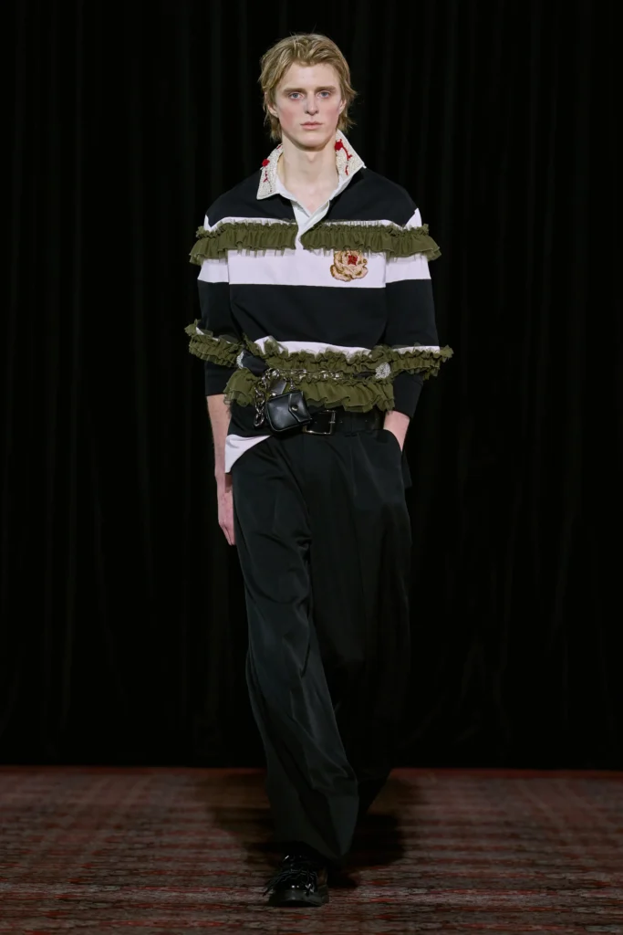 時至今天,欖球球衣除了在綠茵場上綻放外,復古款式同時亦成為了時尚人士和各大品牌的喜愛單品。從 Mithridate 2026 春夏時裝展以間紋款式配搭蛇皮紋路外套,展現欖球球衣的混搭可能性;Gucci 2023 秋冬時裝展以其配搭長裙;Simone Rocha 2025 秋冬系列加入蕾絲的變奏款式等,欖球球衣的「Rugby Core」早已成為當下最流行的單品之一。