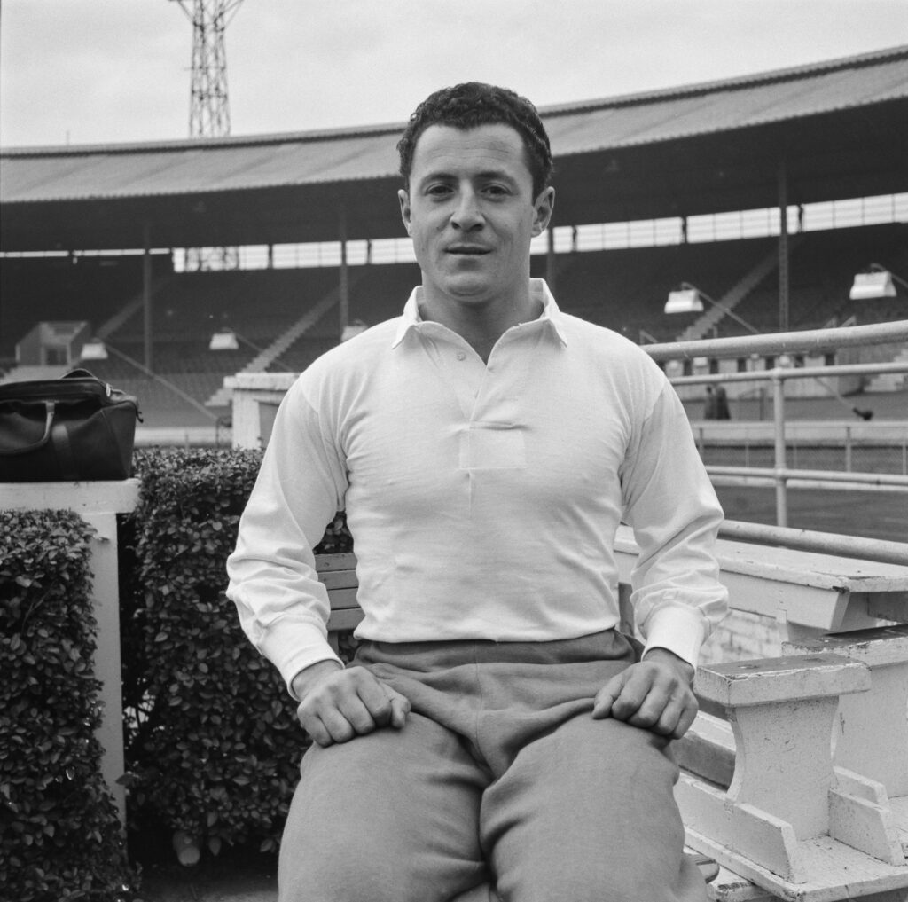 A rugby player wearing a white shirt for a portrait, United Kingdom, circa 1952. Photo by Mrs. Dulce R. Stuart/Hulton Archive/Getty Images
