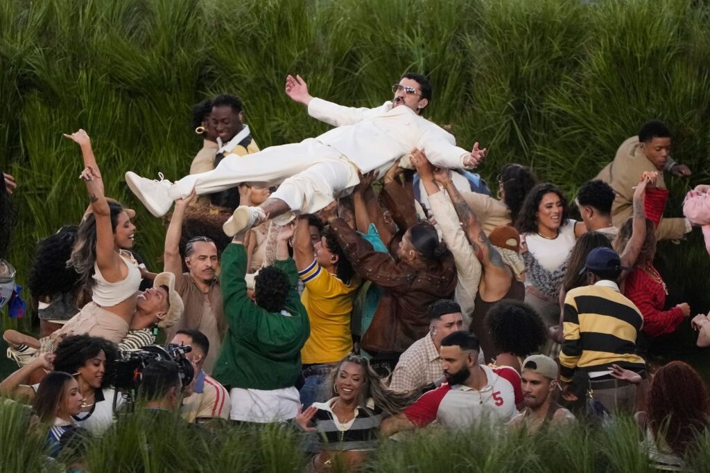 當中像 Cardi B、Pedro Pascal 及 Jessica Alba 等名人也驚喜現身舞台參與其中,Bad Bunny 更為我們帶來了一場真實的婚禮,並演唱了他音樂生涯中多首熱門歌曲(包括《NUEVAYoL》和《DeBÍ TiRAR MáS FOToS》);同時邀請 Ricky Martin、Lady Gaga 等重量級嘉賓同台演出,為舞台再添高潮;此外,也有多位拉丁裔文化代表驚喜現身,包括紐約加勒比海社交俱樂部傳奇人物 Toñita。