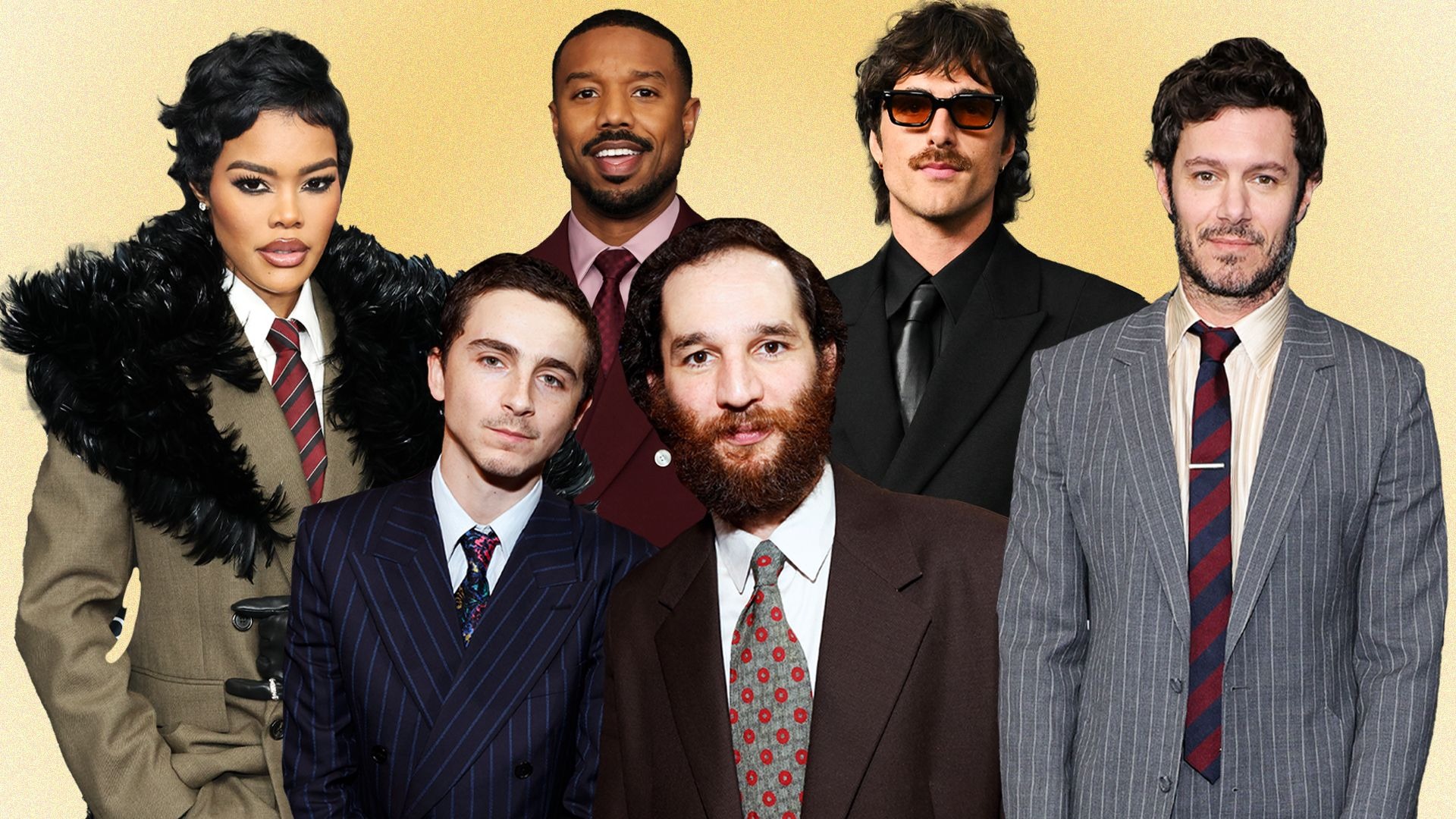 沒錯:紅毯上出現領帶雖然不算新鮮事,但依然引人注目。或許更有趣的是,是人們對2025年末盛行的學院風的堅持。在昨晚的2026年評論家選擇獎頒獎典禮(Critics Choice Awards)上,Adam Brody、Teyana Taylor以及 《Matlock》男星Henry Haber等人都再次展現了他們對條紋斜紋領帶的喜愛,顏色從紅色到海軍藍不等(或者像Adam Brody那樣紅藍相間的)。