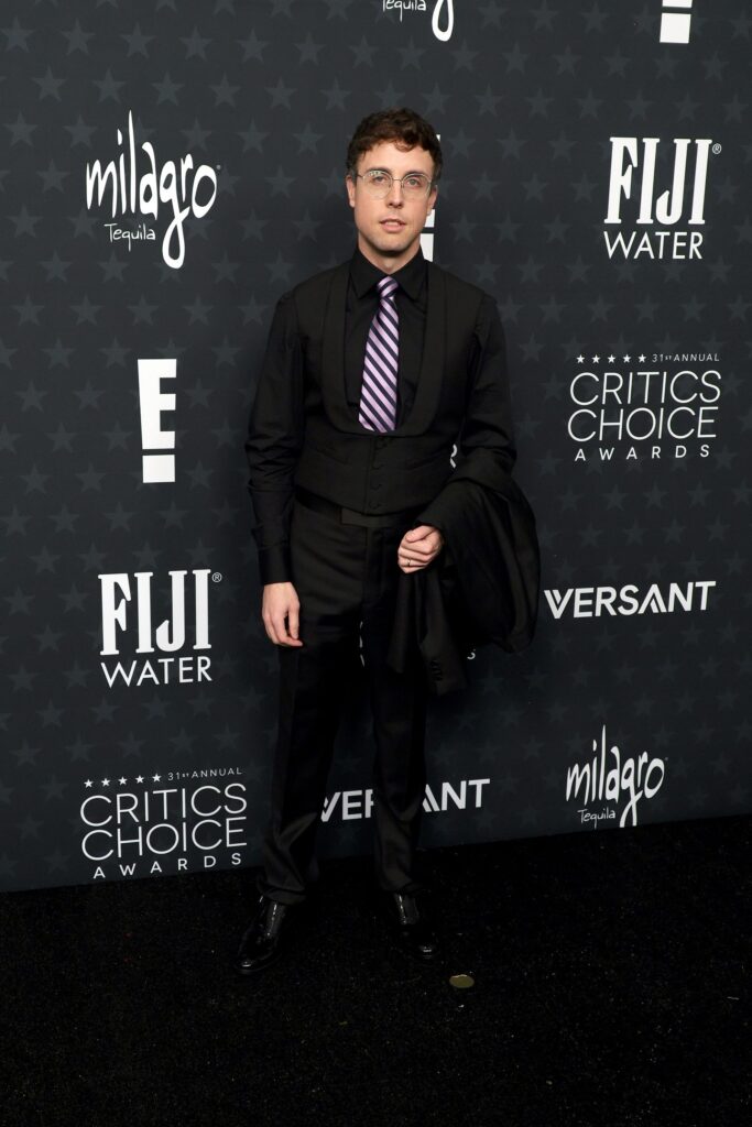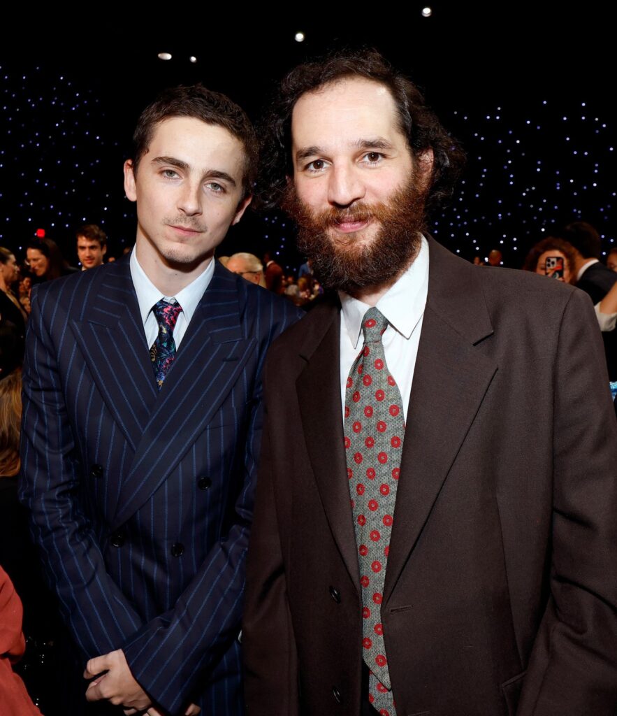 同時,現場也瀰漫著一絲80年代的復古風情:以《Marty Supreme》榮獲最佳男主角獎的Timothée Chalamet,身穿 Givenchy 的海軍藍色細條紋西裝,搭配着一條飾有霓虹花卉圖案的黑色領帶。執導該片的Josh Safdie, 也緊隨其後,選擇了一件灰紅色相間的幾何圖案領帶,如果我父親在1987年左右還在辦公室工作或者繫領帶的話,這件領帶簡直就像是從他當時的辦公室衣櫥裡翻出來的。