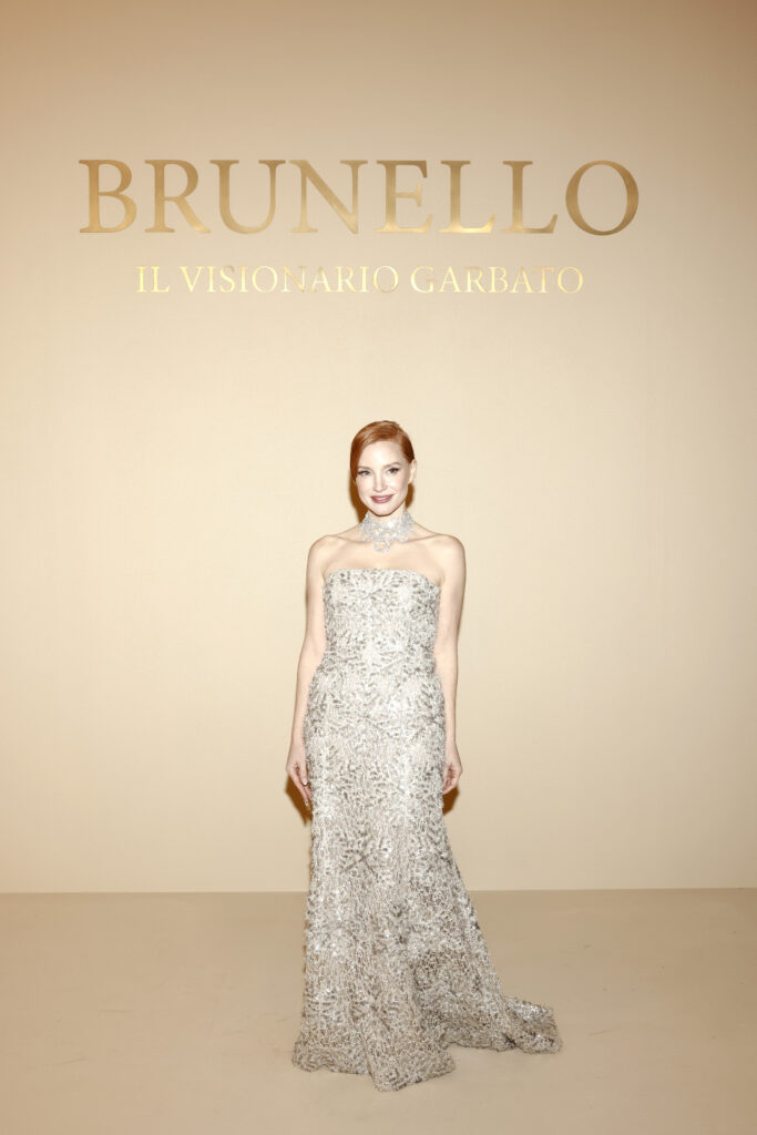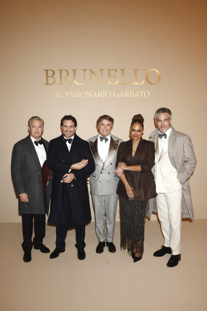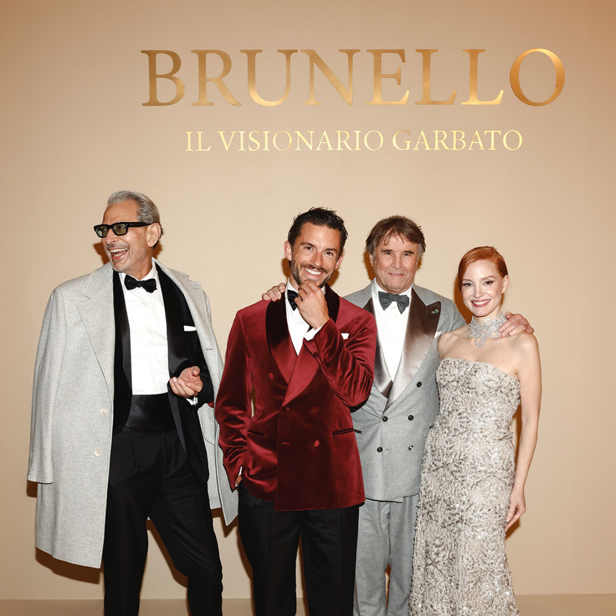 在這個特別的晚上,Brunello Cucinelli 本人以及一眾家族成員齊聚紅地毯,意大利現任總理 Giorgia Meloni、前總理 Mario Draghi 亦有現身支持;同場更是星光熠熠、陣容鼎盛,一眾品牌好友及影界名人,包括荷里活演員 Jonathan Bailey、Jeff Goldblum、Jessica Chastain、Chris Pine 等人,以及中國女星劉濤、以及韓流明星朴珍榮及申世景等人亮相紅毯,以及三位由 Brunello Cucinelli 本人親自挑選,分別飾演他年輕時期的意大利演員 Francesco Cannevale、Saul Nanni 與 Francesco Ferroni 亦一同現身會場。