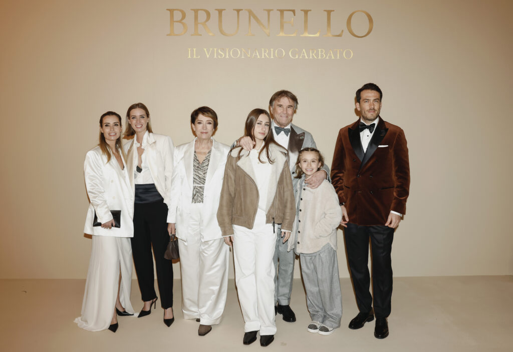 ROME, ITALY – DECEMBER 04: Camilla Cucinelli, Carolina Cucinelli, Federica Benda, Vittoria Stefanelli-Cucinelli, Brunello Cucinelli, Penelope Stefanelli-Cucinelli and Riccardo Stefanelli attend the “Brunello, Il Visionario Garbato” red carpet at Cinecittà on December 04, 2025 in Rome, Italy. (Photo by Lorenzo Palizzolo/Getty Images for Brunello Cucinelli)