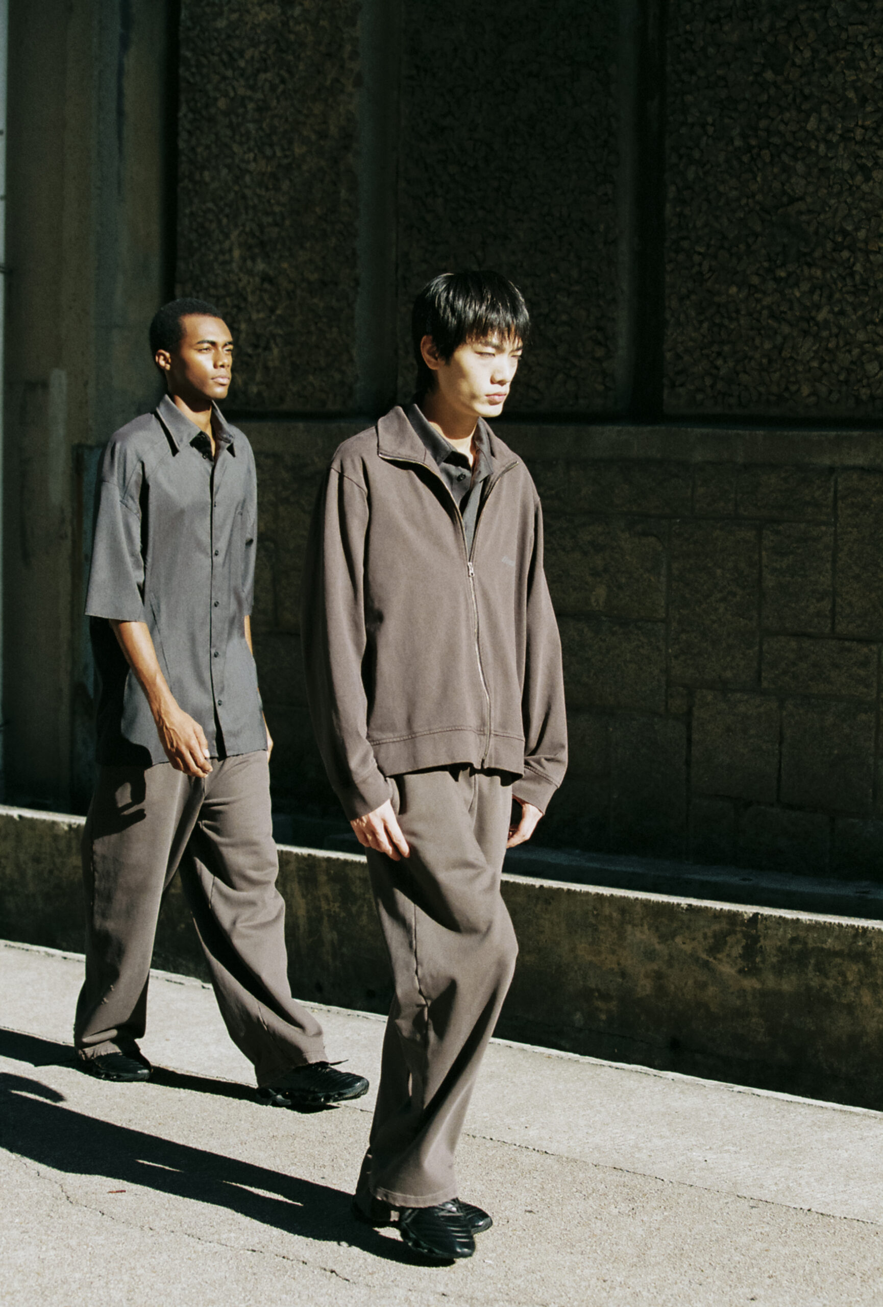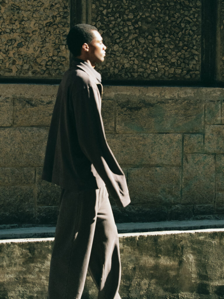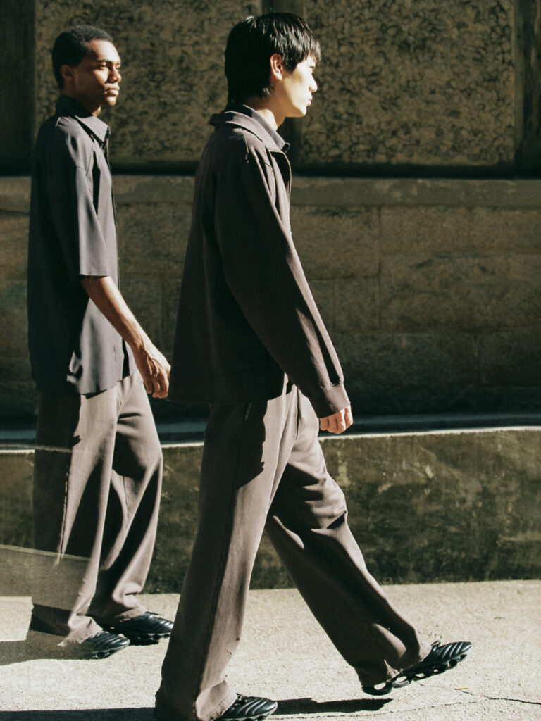 在服裝設計上,CODA 刻意拉長袖長與褲長的比例,打造出布料自然垂墜、隨性有型的輪廓感。布料方面,則採用了品牌標誌性的「Aging」概念與獨特洗水工藝,營造出經過時間洗禮後的獨特痕跡,彰顯歷練與個性。