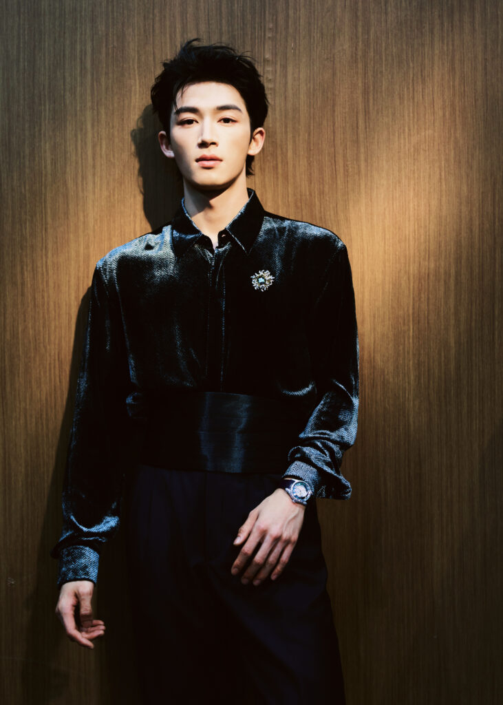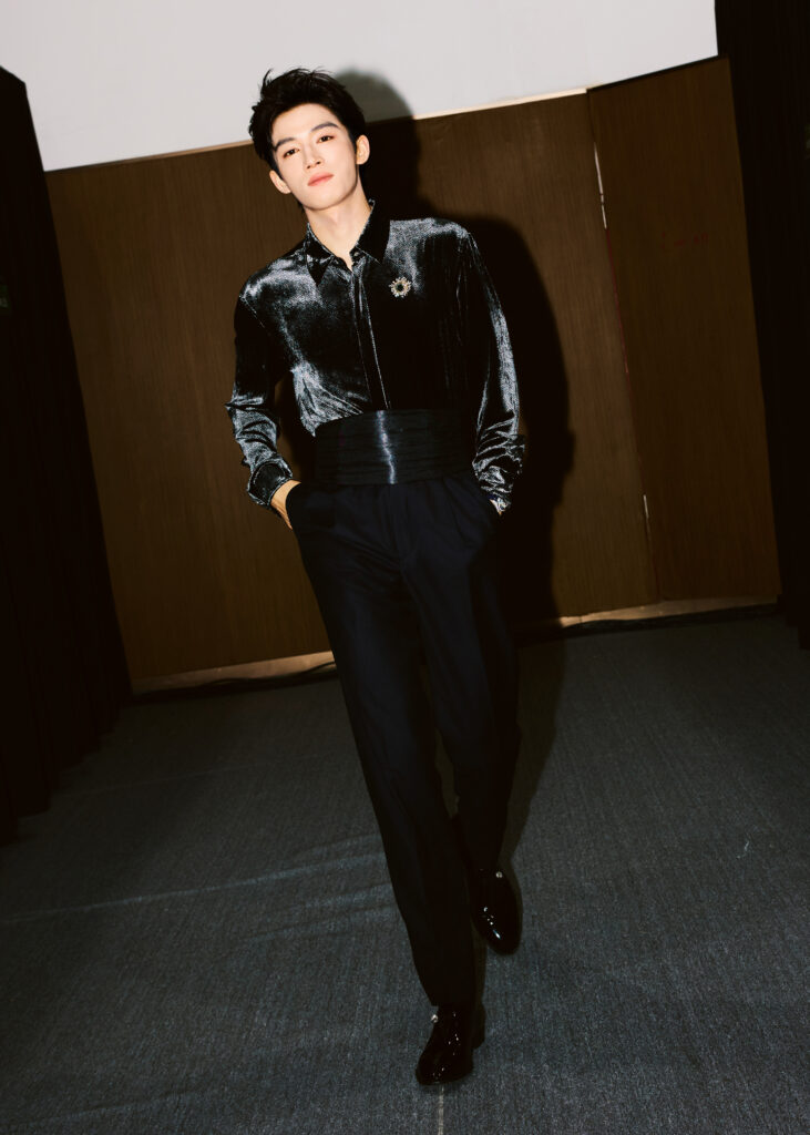 中國演員兼品牌摯友王星越演繹 Giorgio Armani 2025 秋冬系列造型。宣傳照中王星越以全黑造型亮相,身穿絲絨材質的恤衫,配搭西褲以及腰封,完美展現品牌奢華低調的型格氛圍。