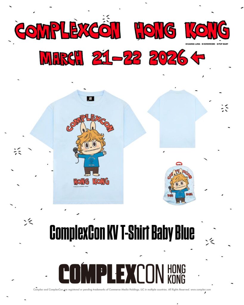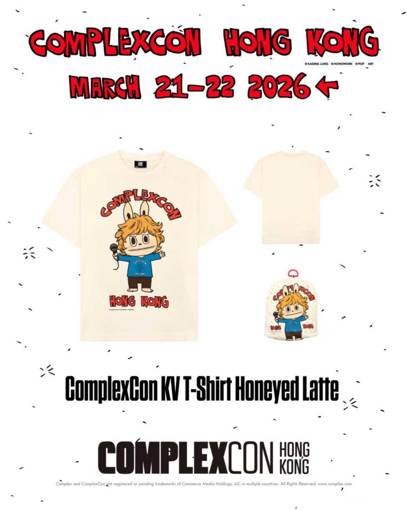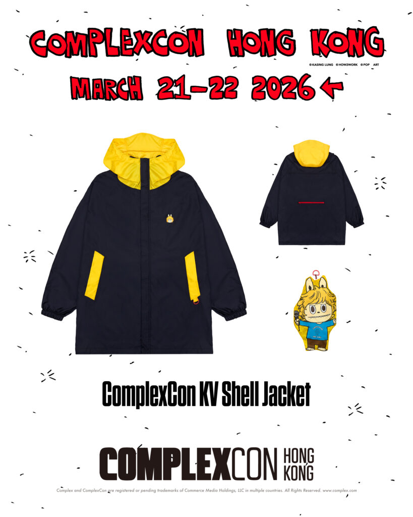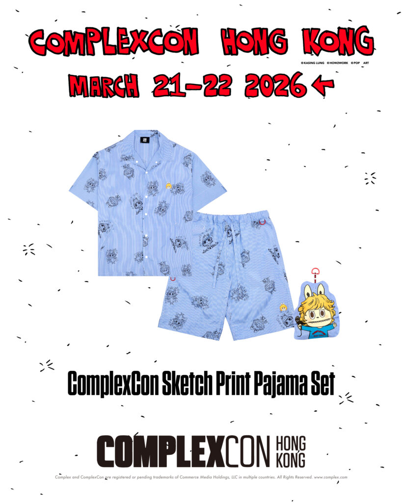 這次 ComplexCon 香港會場限定 LABUBU 主視覺服飾系列深度融合了獨特的摺疊結構與實用主義,圍繞 LABUBU 進行大膽創新之創作,當中包括了 T-Shirt、機能風外套及手稿印花睡衣套裝!T-shirt 及機能外套的口袋更有趣地可成為掛飾,睡衣亦備有小袋子及掛鉤。會場限定單品將只會於 3 月 21 至 22 日一連兩天在 ComplexCon GIFT SHOP 展位作獨家發售!